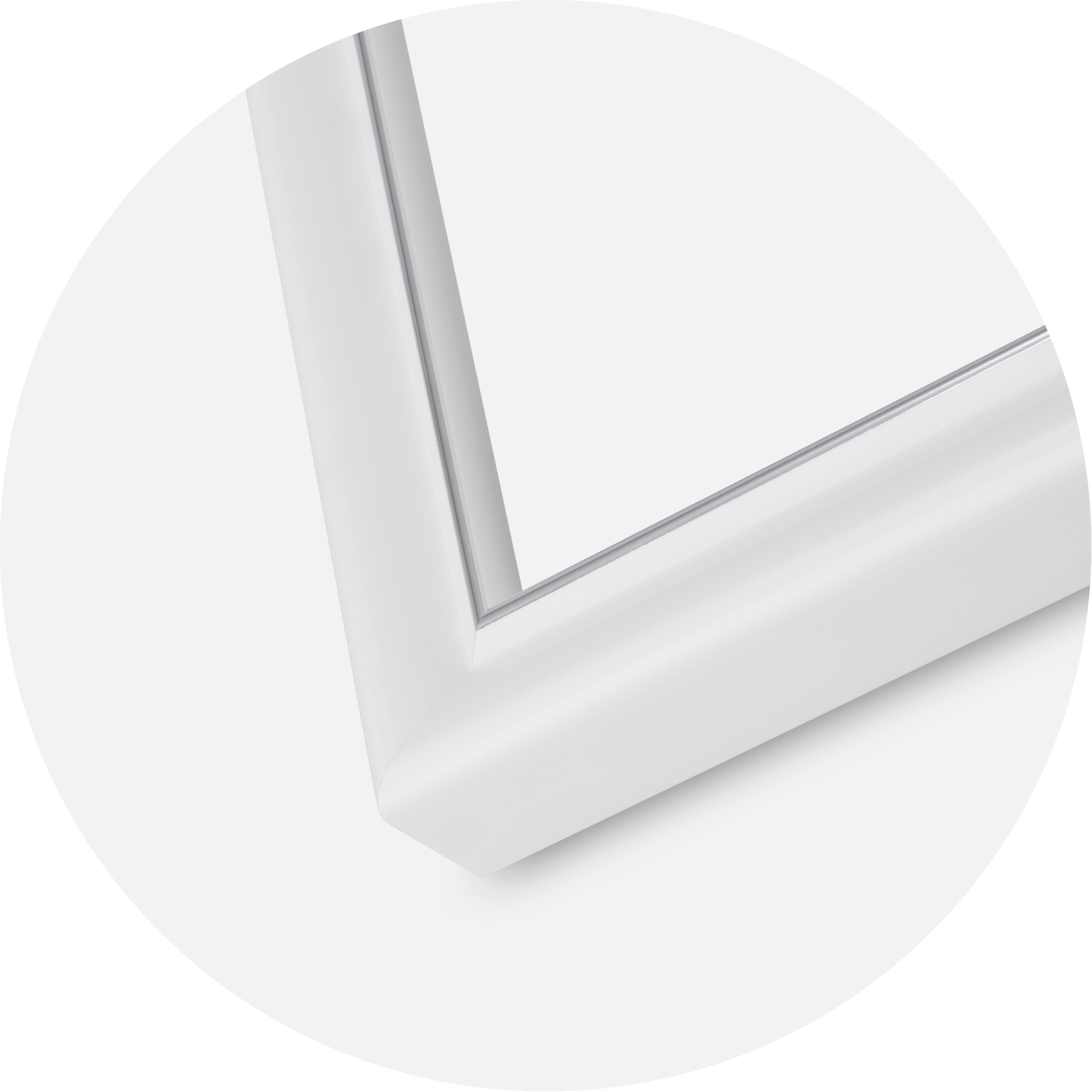 Der Rahmen hat ein schmales Profil mit einer Rahmenleiste, die 23 mm breit und 27 mm tief ist. Das sorgt für einen klaren und eleganten Ausdruck. Die neutrale weiße Farbe in Kombination mit dem natürlichen Charakter macht diesen Rahmen zu einem eleganten Element in skandinavischen wie auch traditionellen Wohnräumen. Die präzisen Ecken und das gleichmäßige Finish schaffen eine helle und harmonische Atmosphäre.