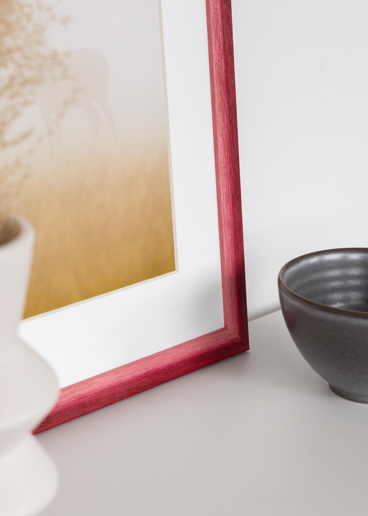 Dieser Fotorahmen im Format 30x30 cm ist eine perfekte Kombination aus modernem Design und klassischer Eleganz. Mit seiner glatten Oberfläche in einem Rot-Rosa-Ton hebt er die natürliche Schönheit des Holzes hervor und verleiht deinem Zuhause eine warme Ausstrahlung. Das schmale Profil, mit einer Rahmenleiste von 23 mm und einer Tiefe von 13 mm, sorgt für einen stilvollen Look, der dein Motiv in den Mittelpunkt stellt.