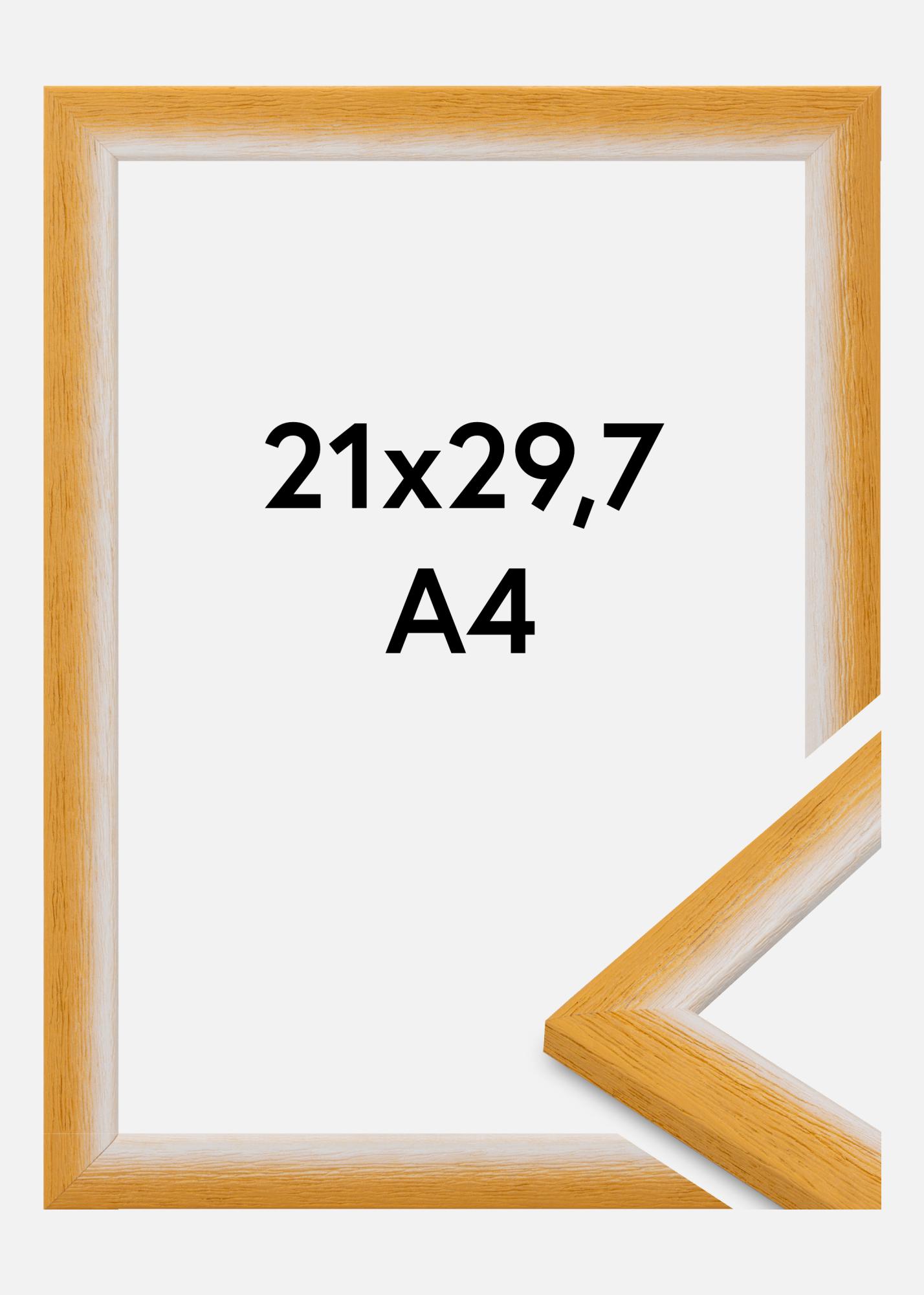 Dieser Fotorahmen in der Größe 21x29,7 cm (A4) ist eine perfekte Kombination aus modernem Design und klassischer Eleganz. Mit seinem warmen Gelbton und der glatten Oberfläche hebt er die natürliche Holzstruktur dezent hervor. Das schmale Profil, mit einer Rahmenleiste von 23 mm und einer Tiefe von 13 mm, sorgt für einen stilvollen und reduzierten Look, der dein Motiv in den Mittelpunkt stellt.
