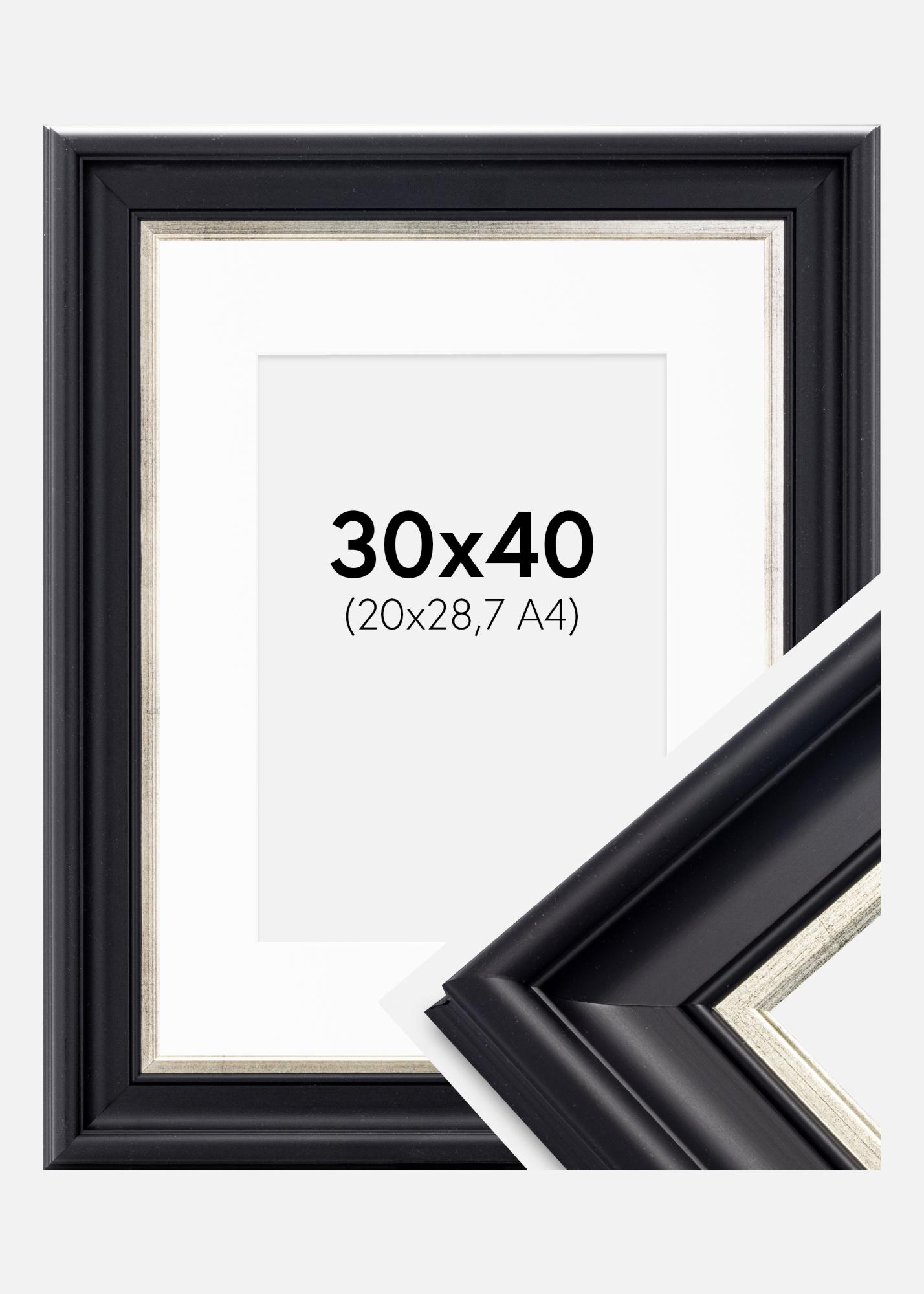 Rahmen Dalarna Schwarz-Silber 30x40 cm - Passepartout Weiß 21x29,7 cm (A4)