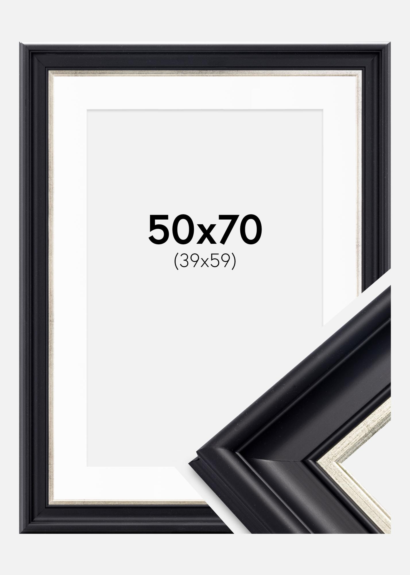 Rahmen Dalarna Schwarz-Silber 50x70 cm - Passepartout Weiß 40x60 cm