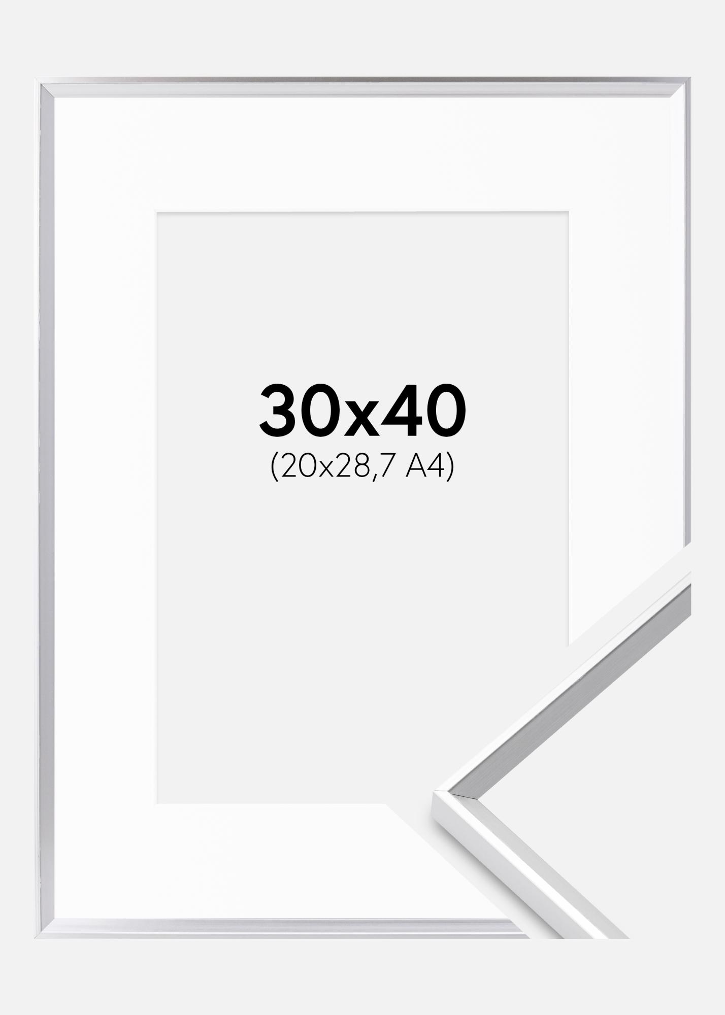 Rahmen Desire Silber 30x40 cm - Passepartout Weiß 21x29,7 cm (A4)