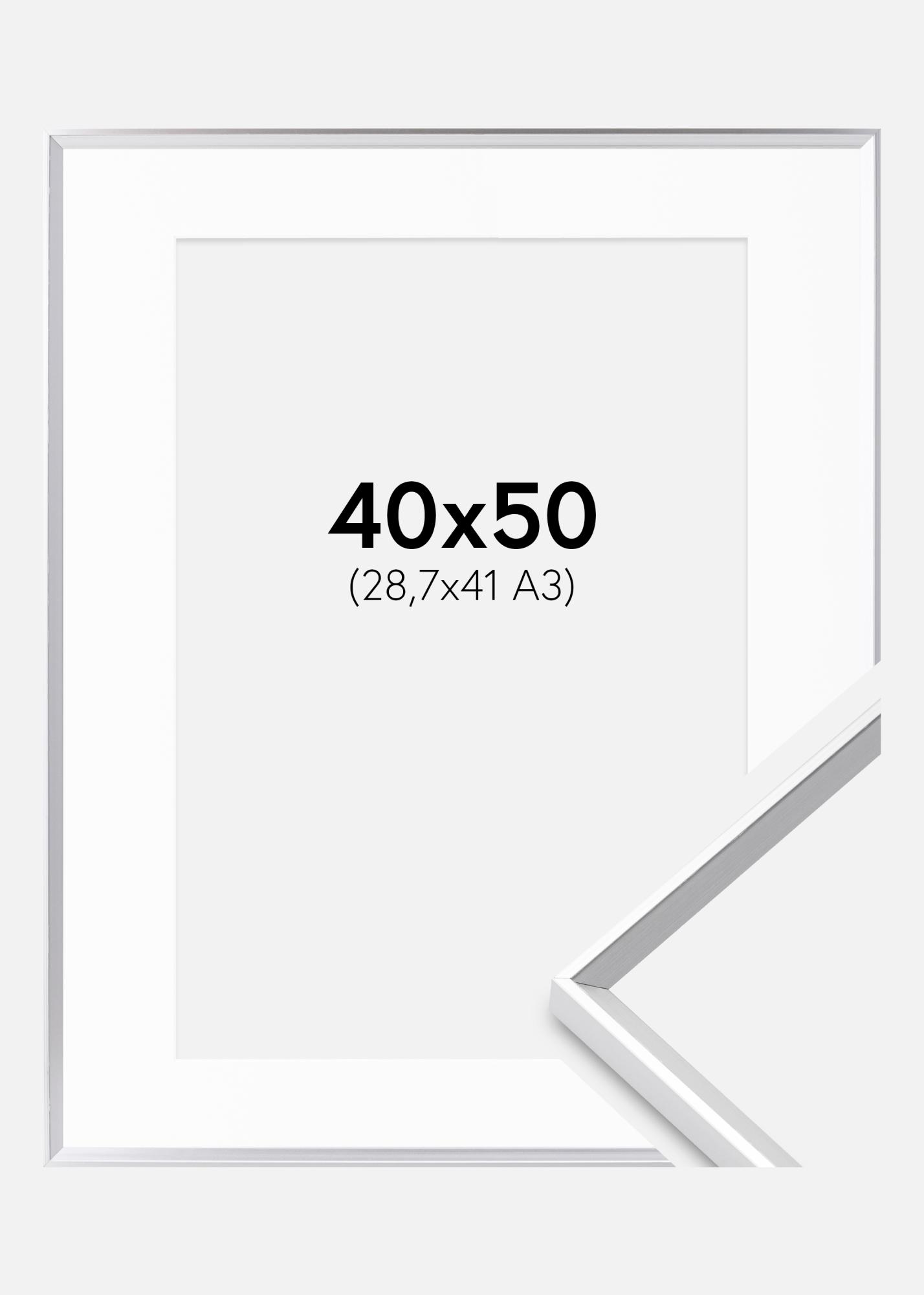 Rahmen Desire Silber 40x50 cm - Passepartout Weiß 29,7x42 cm (A3)