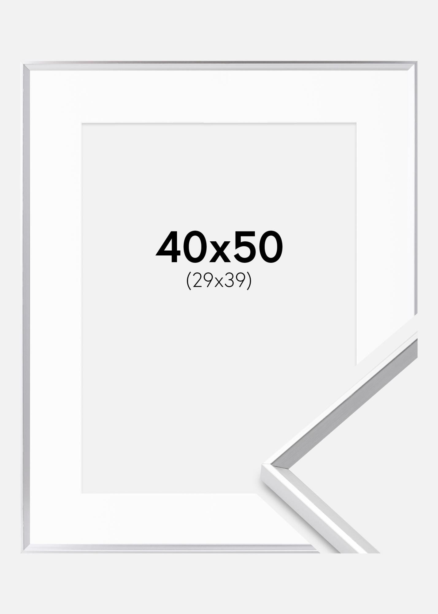 Rahmen Desire Silber 40x50 cm - Passepartout Weiß 30x40 cm