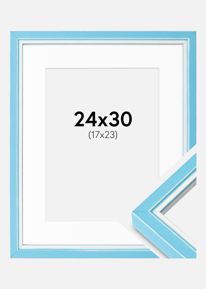 Rahmen Diana Hellblau 24x30 cm - Passepartout Weiß 18x24 cm