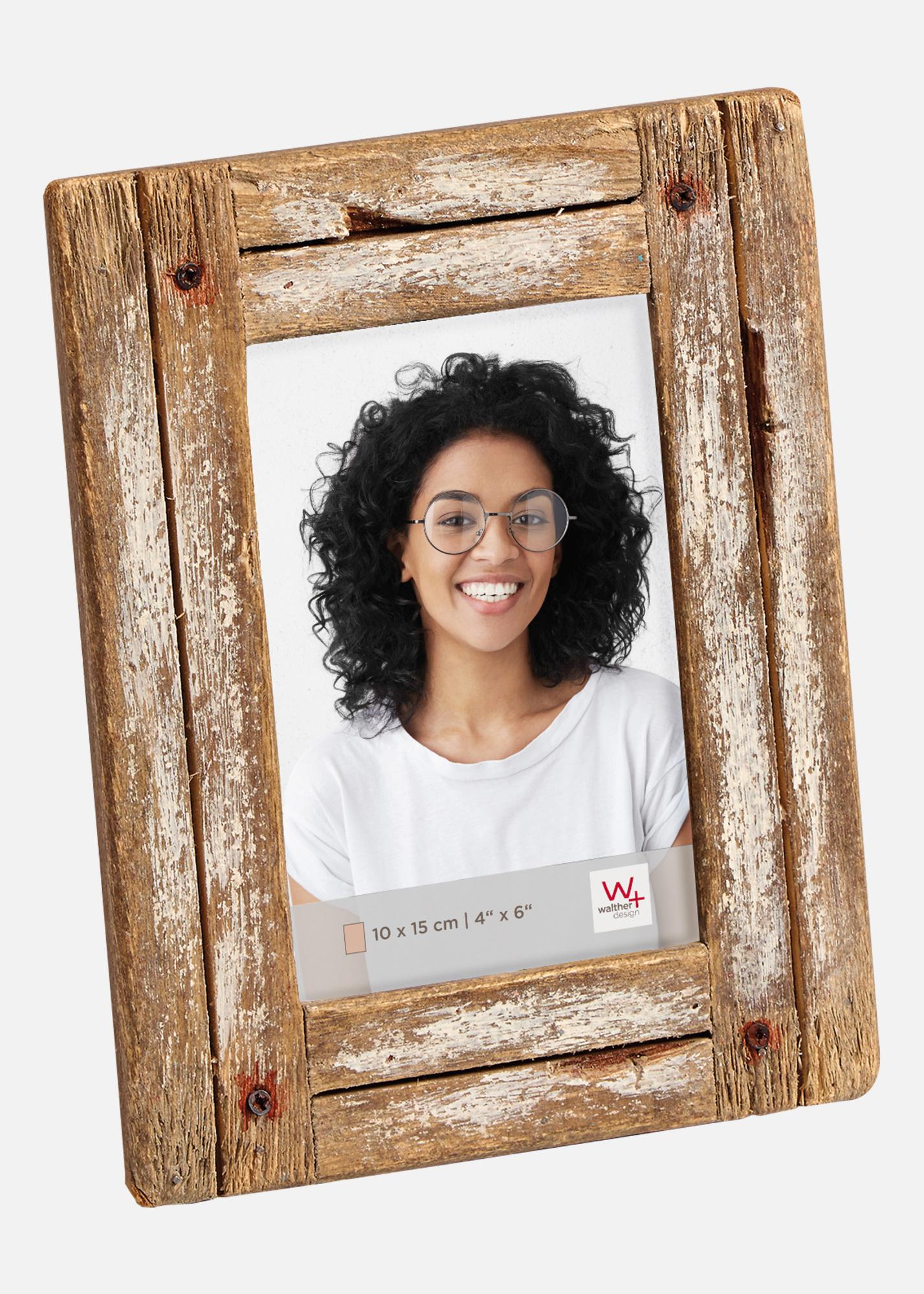 Das Design des Rahmens mit einer 36,7 mm breiten Rahmenleiste vermittelt ein robustes und markantes Gefühl, das die Aufmerksamkeit des Betrachters auf sich zieht. Die natürliche Oberfläche des Rahmens passt zu verschiedenen Einrichtungsstilen, von rustikal bis modern. Mit den Maßen 10 x 15 cm ist er ideal, um Ihre kleinen Kunstwerke oder Fotografien hervorzuheben.