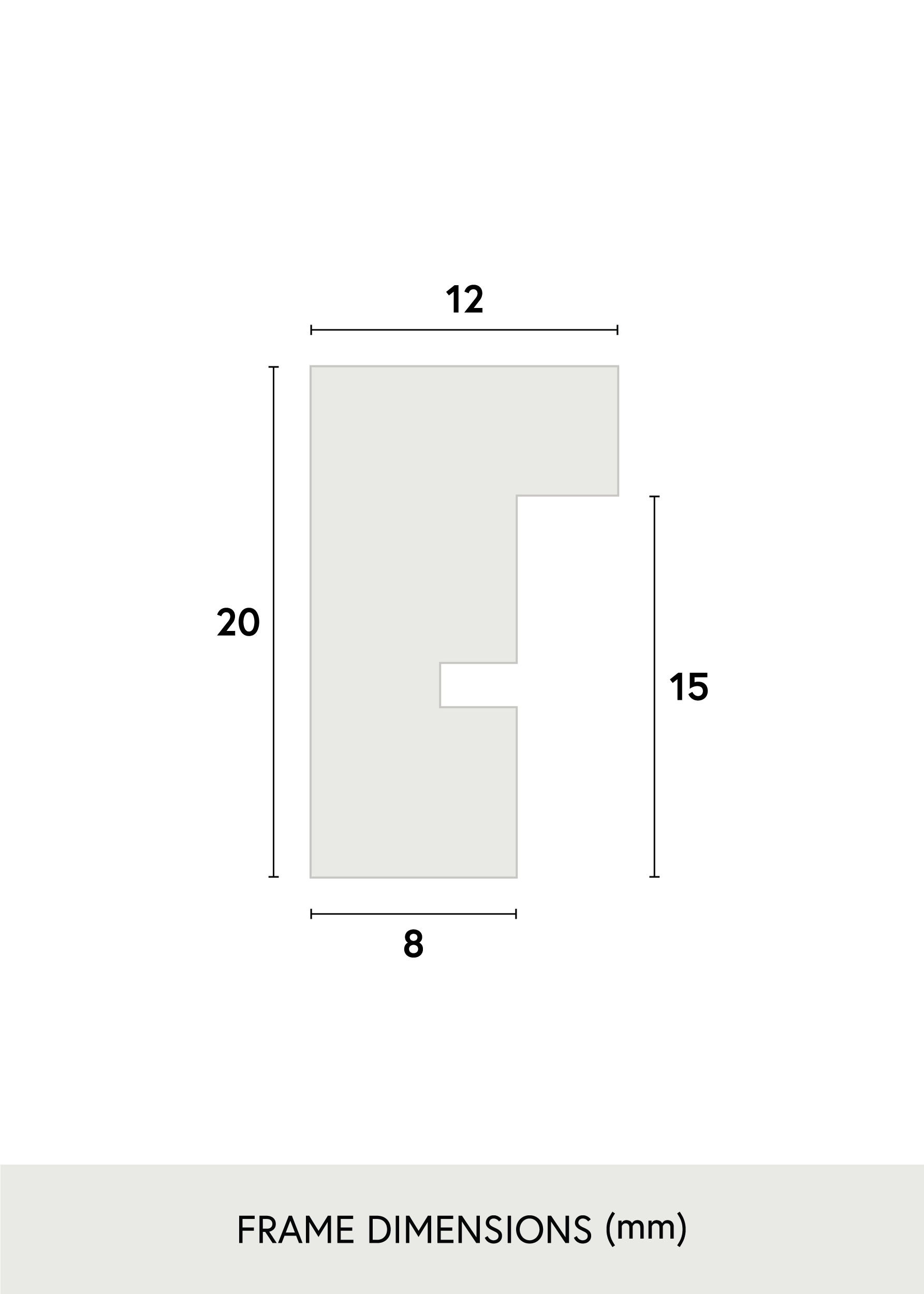 Set mit Bilderrahmen und passendem, schwarzem Passepartout. Das Produktbild zeigt die Maße des Rahmens (fettgedruckt) und die Innenmaße des Passepartouts (in Klammern). Bitte beachten, dass die Innenmaße des Passepartouts immer 1 cm kleiner sein müssen als die gewünschte Bildgröße.