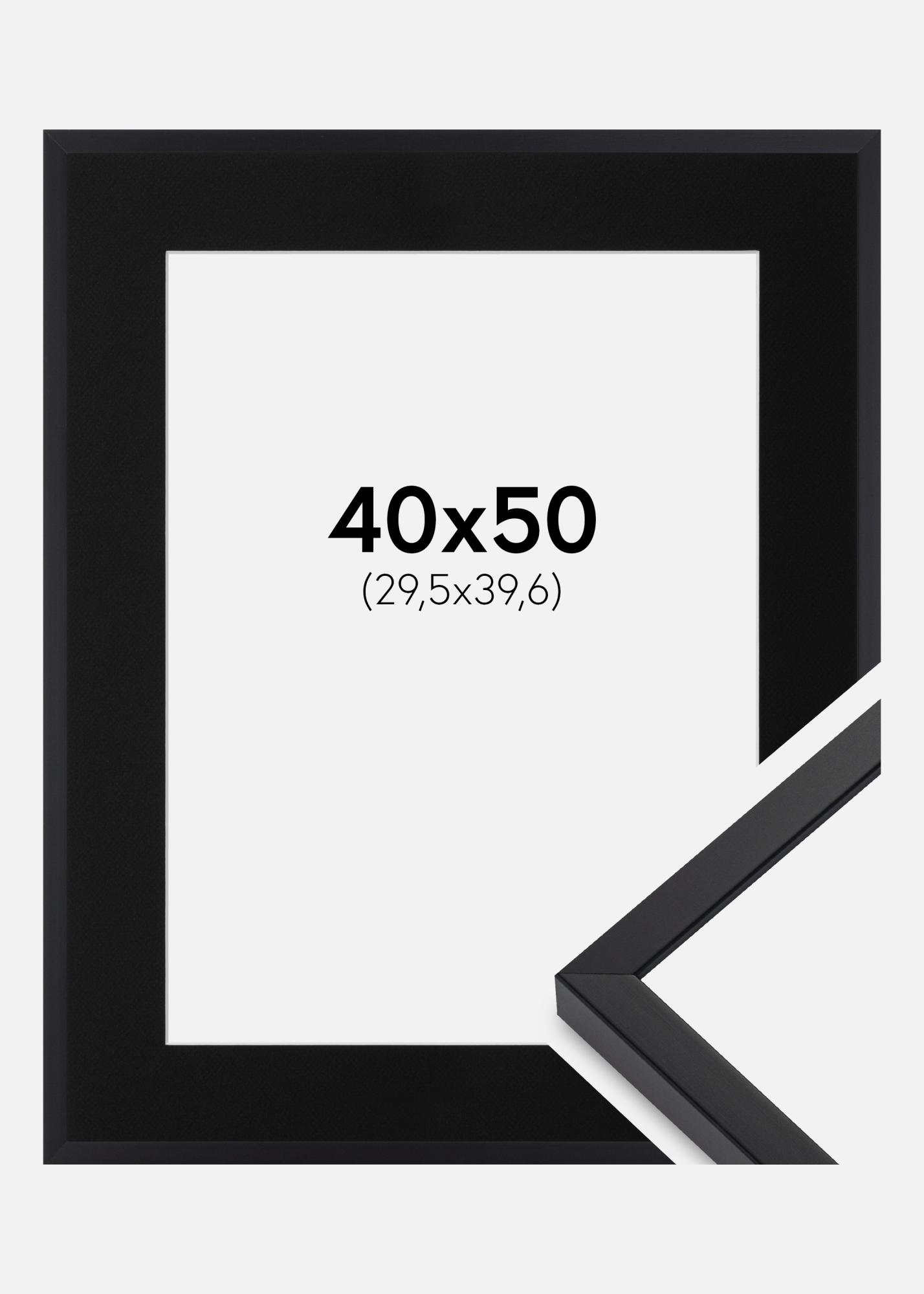 Rahmen E-Line Schwarz 40x50 cm - Passepartout Schwarz 12x16 inches