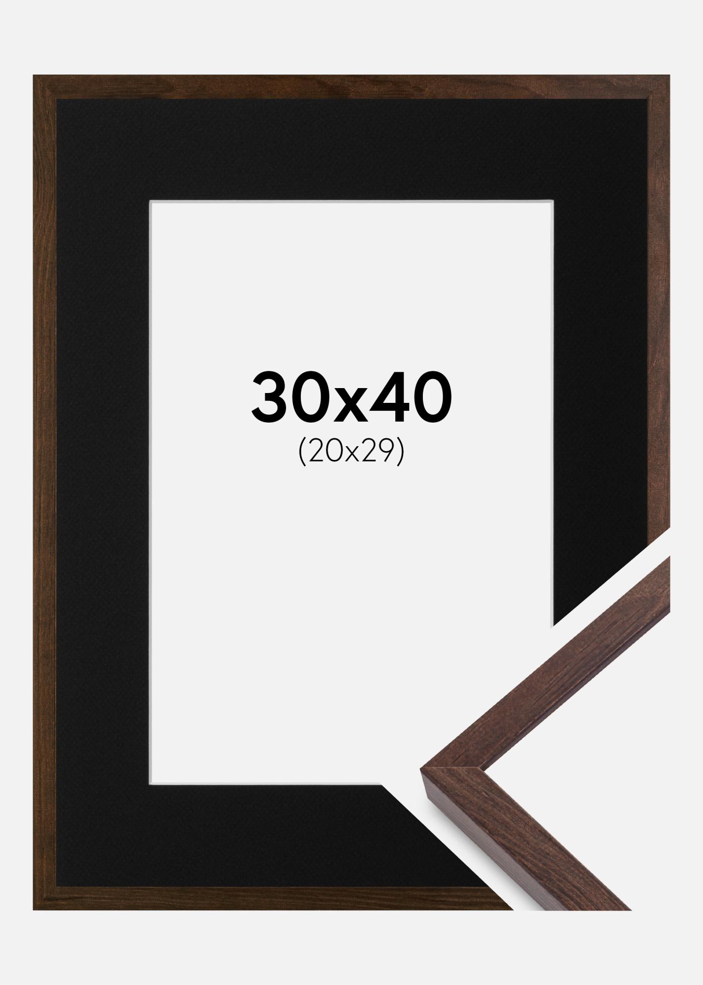 Rahmen E-Line Walnuss 30x40 cm - Passepartout Schwarz 21x30 cm