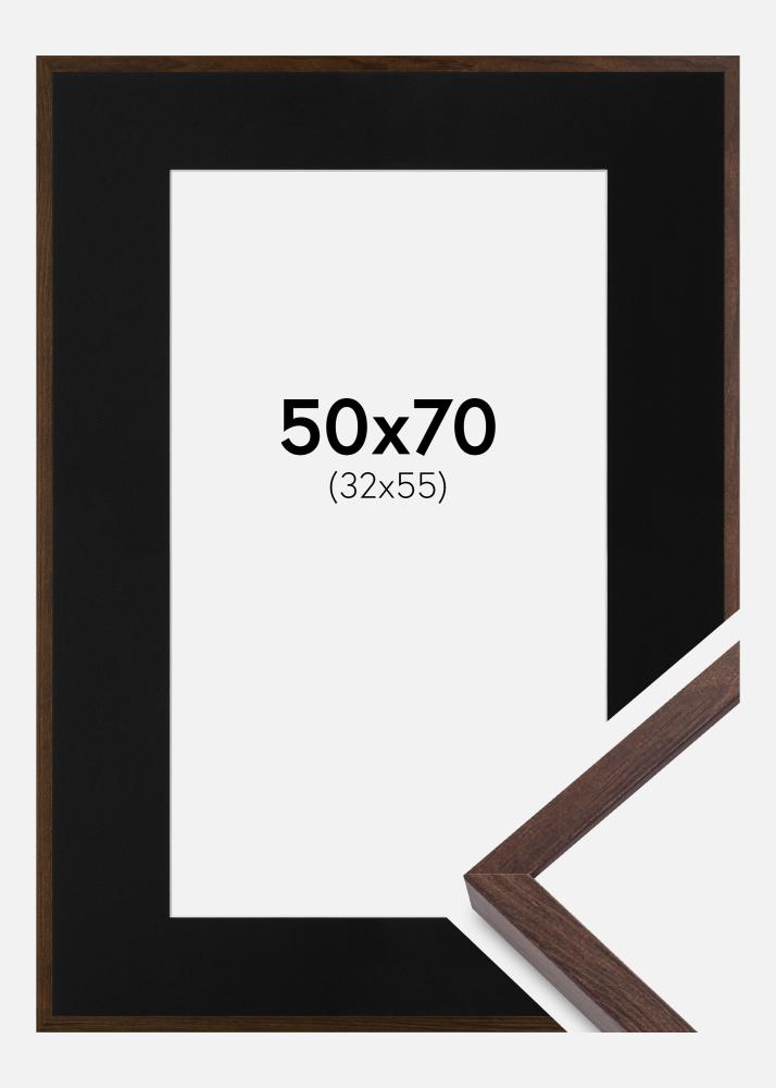 Rahmen E-Line Walnuss 50x70 cm - Passepartout Schwarz 33x56 cm