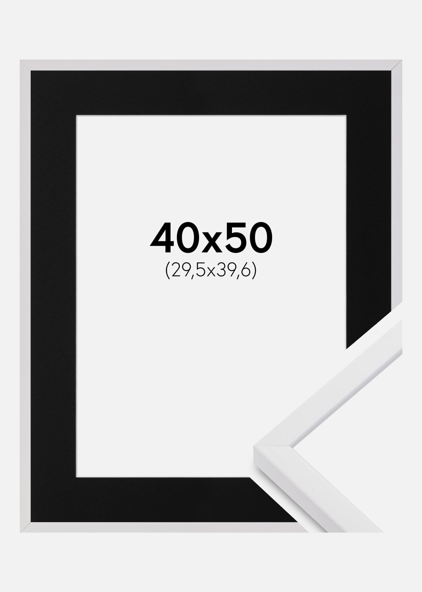 Rahmen E-Line Weiß 40x50 cm - Passepartout Schwarz 12x16 inches