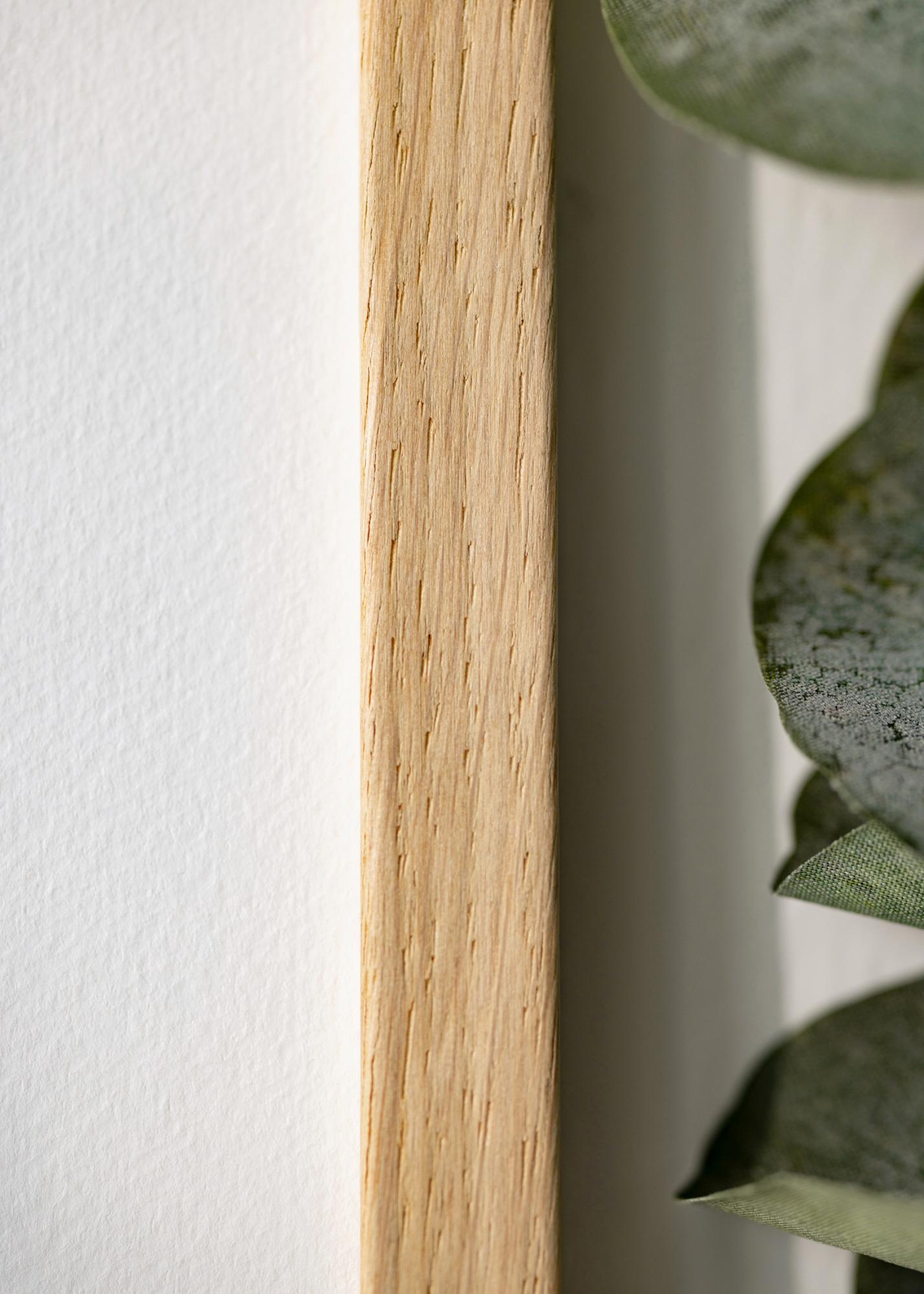 Manchmal werden wir gefragt, warum der Bilderrahmen aus Eichenfurnier und nicht aus echtem massiven Eichenholz besteht, wo es sich doch um einen Qualitätsrahmen handelt. Der Grund dafür ist, dass es schwierig ist, eine balancierte Oberfläche zu erhalten, wenn nur mit Eichenholz gearbeitet wird. Oft kommt es zu Farbveränderungen an verschiedenen Teilen des Holzes, was in einigen Zusammenhängen gut passt. Bei einem Bilderrahmen besteht jedoch die Gefahr, dass diese verschiedenen Farbtöne als störende Verfärbungen wahrgenommen werden.