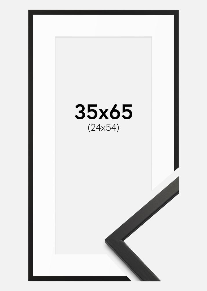 Ein eleganter schwarzer Rahmen mit Passepartout kann jedes Foto oder Kunstwerk in ein stilvolles Einrichtungsdetail verwandeln. Dieser Rahmen ist für Bilder in der Größe 25x55 cm konzipiert und hat ein mattes Finish, das ein anspruchsvolles Gefühl vermittelt. Mit einer Breite von 13 mm und einer Tiefe von 11,5 mm ist der Rahmen sowohl geschmeidig als auch robust, was ihn zu einer ausgezeichneten Wahl macht, um Ihre Lieblingsbilder hervorzuheben.