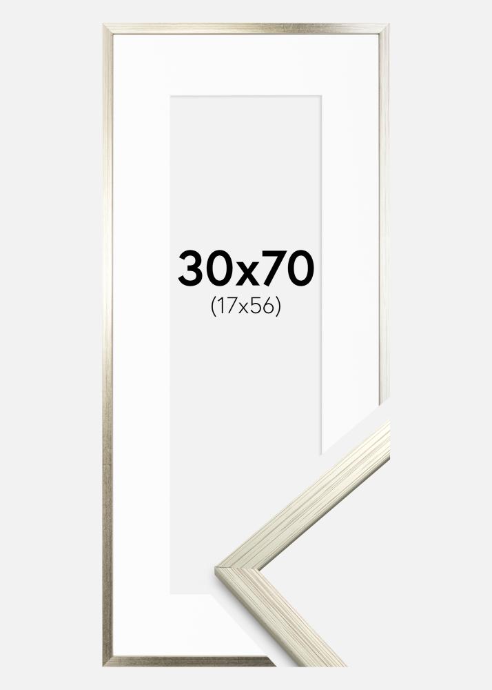 Rahmen Edsbyn Silber 30x70 cm - Passepartout Weiß 18x57 cm