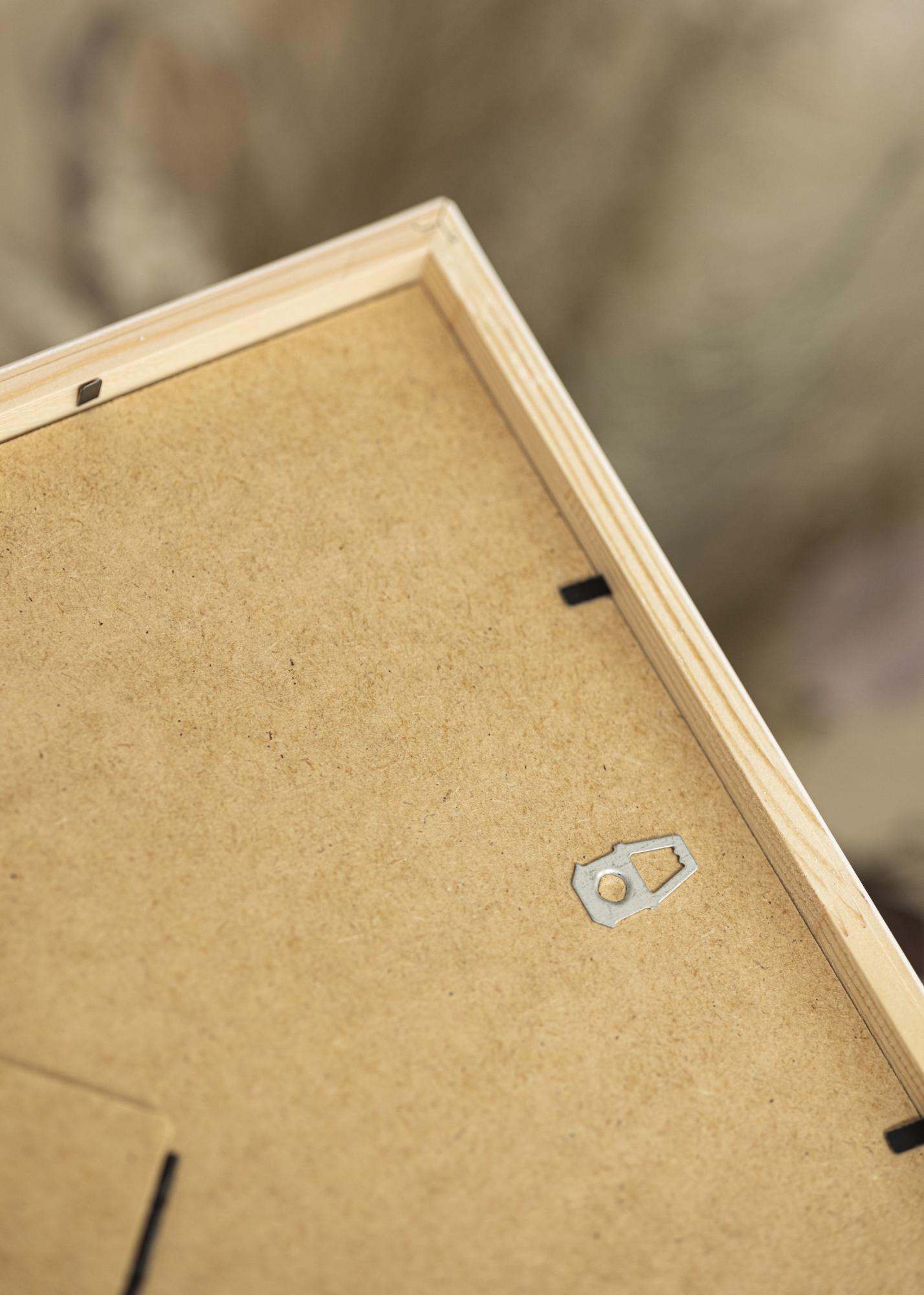 Im Lieferumfang dieses Bilderrahmens ist ein weißes Passepartout enthalten. Bild als auch Passepartout werden in den Bilderrahmen eingelegt, indem die Rückwand gelöst wird. Hierfür einfach die kleinen biegbaren Stifte, die die Rückwand auf der Rahmenrückseite halten, nach oben biegen.