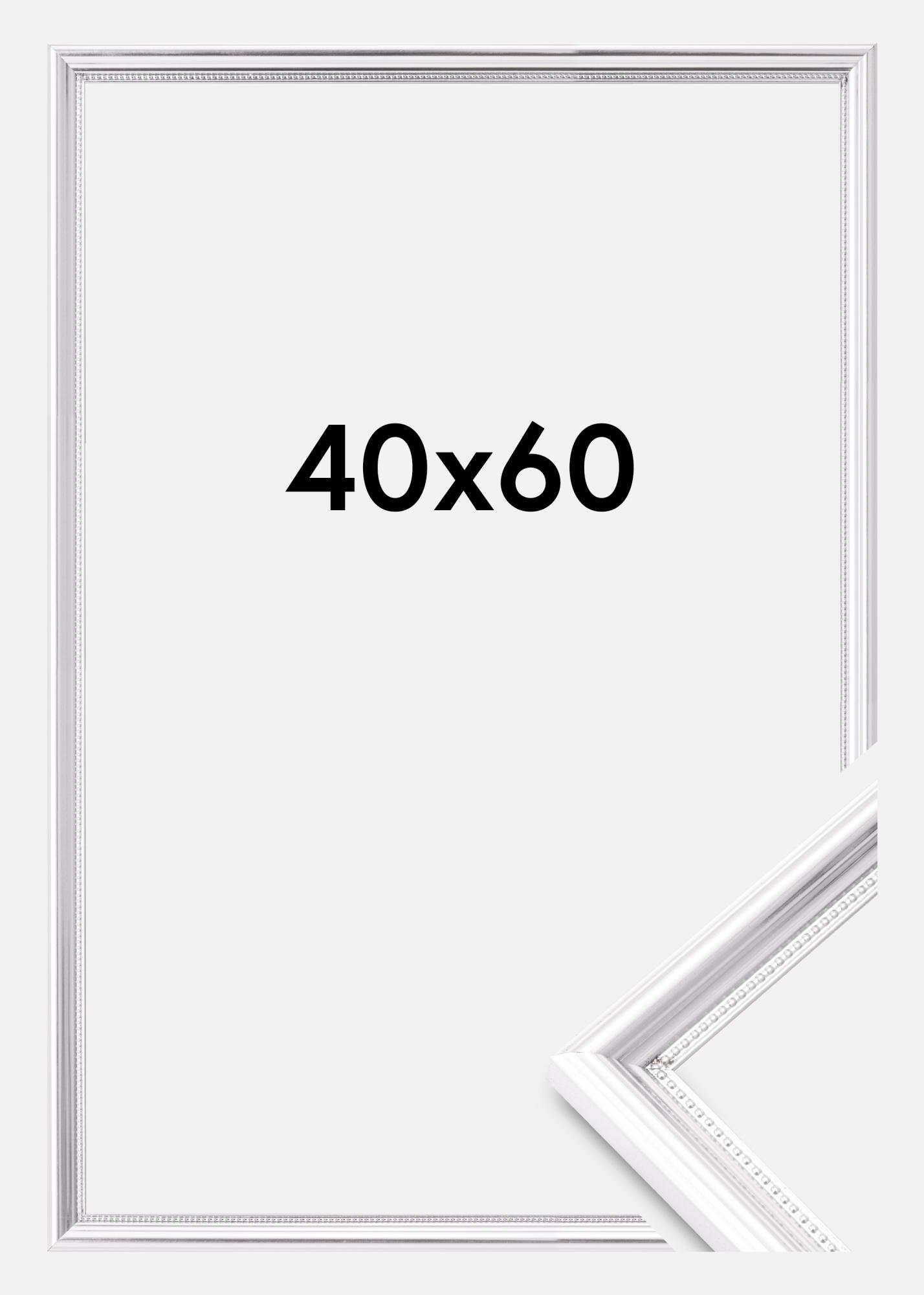 Geben Sie Ihren Wänden mit diesem silberfarbenen Fotorahmen in der Größe 40x60 cm eine elegante Note. Mit seinem profilierten Rahmen von 20 mm und einer Tiefe von 17 mm vereint dieser Bilderrahmen klassisches Design mit modernen Details. Die glänzende Oberfläche reflektiert das Licht wunderschön und verleiht Ihrem ausgewählten Foto oder Kunstwerk ein luxuriöses Gefühl.