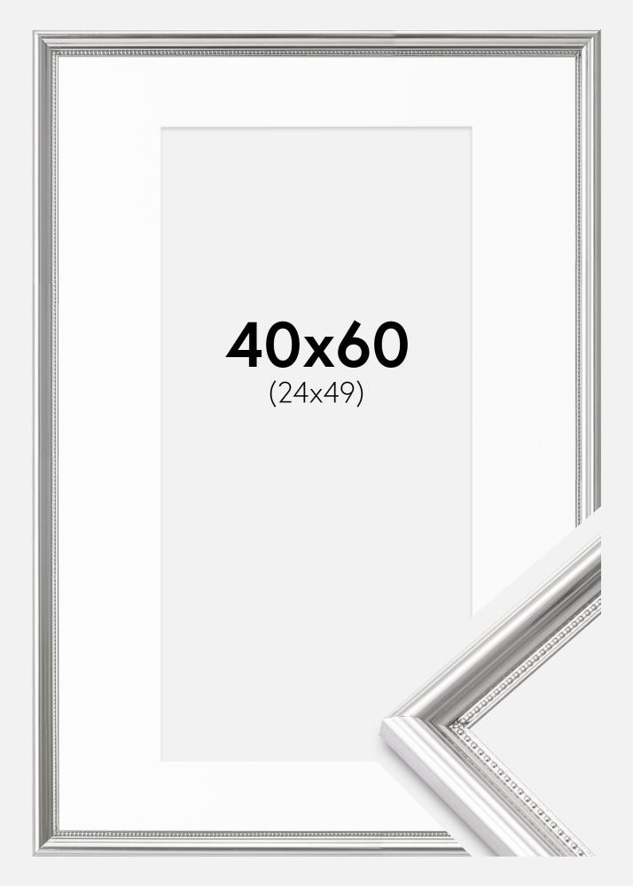 Rahmen Gala Silber 40x60 cm - Passepartout Weiß 25x50 cm