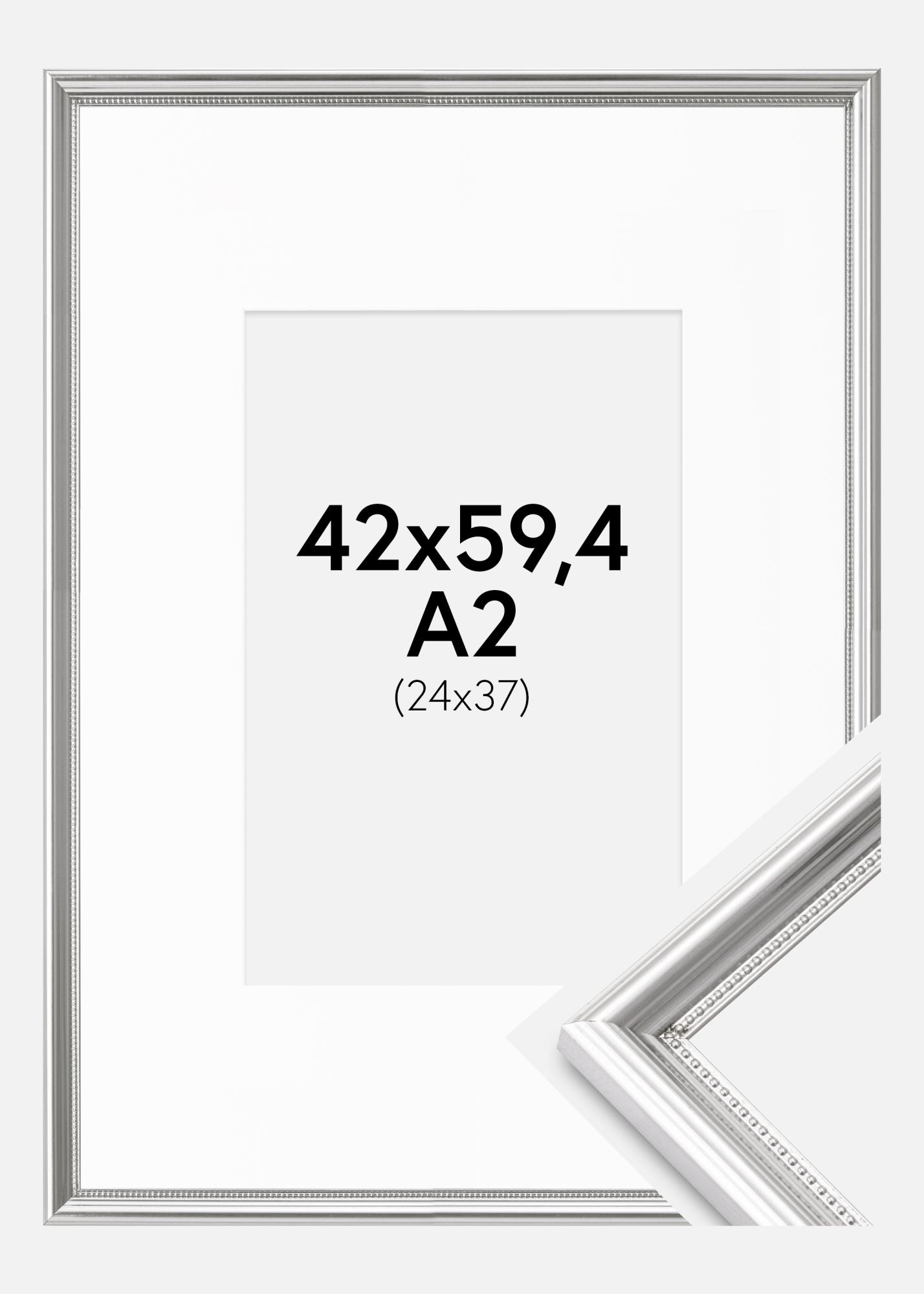 Rahmen Gala Silber 42x59,4 cm (A2) - Passepartout Weiß 25x38 cm
