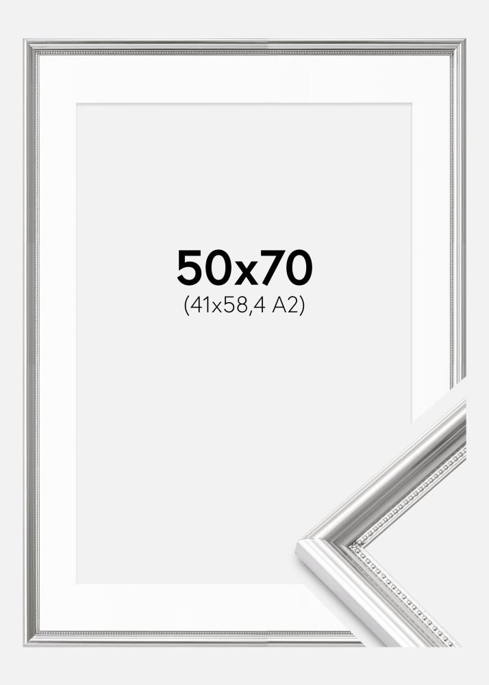 Rahmen Gala Silber 50x70 cm - Passepartout Weiß 42x59,4 cm (A2)