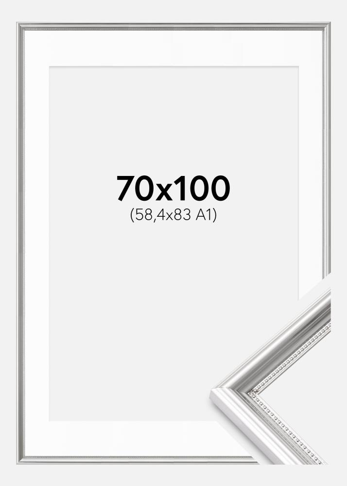 Rahmen Gala Silber 70x100 cm - Passepartout Weiß 59,4x84 cm (A1)