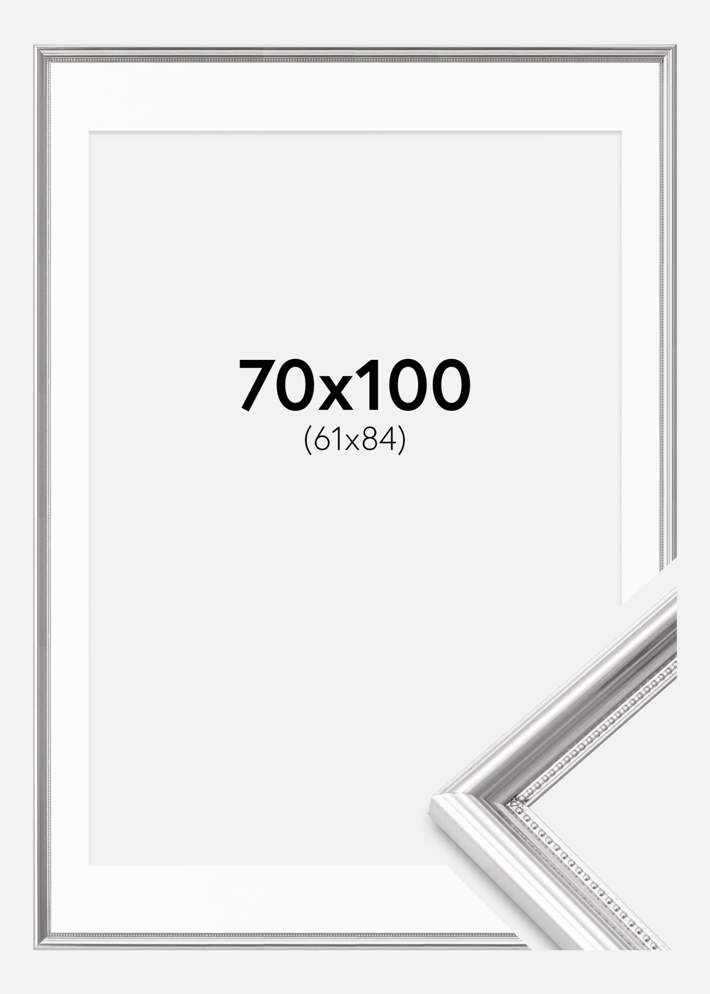 Rahmen Gala Silber 70x100 cm - Passepartout Weiß 62x85 cm
