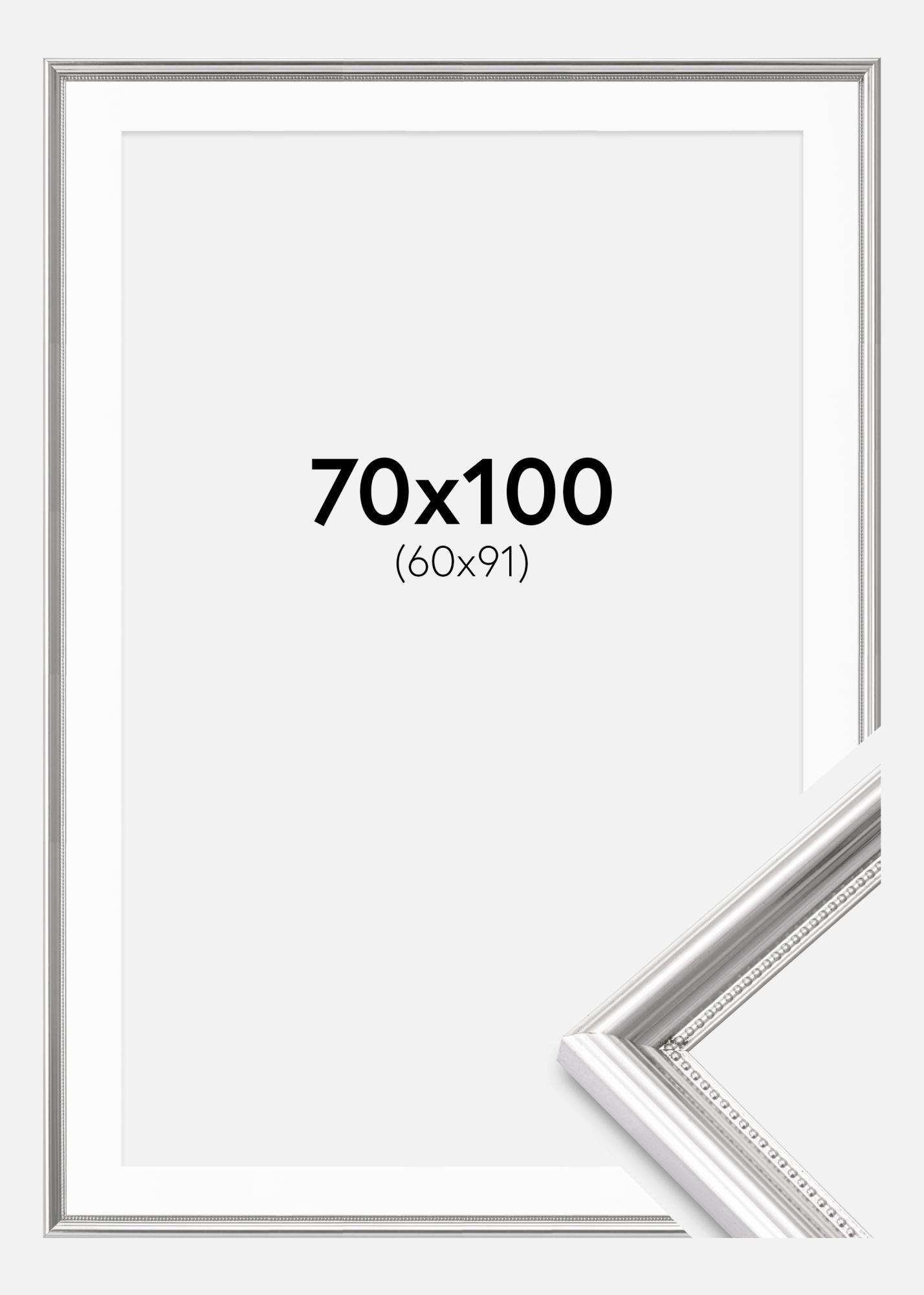 Rahmen Gala Silber 70x100 cm - Passepartout Weiß 61x92 cm