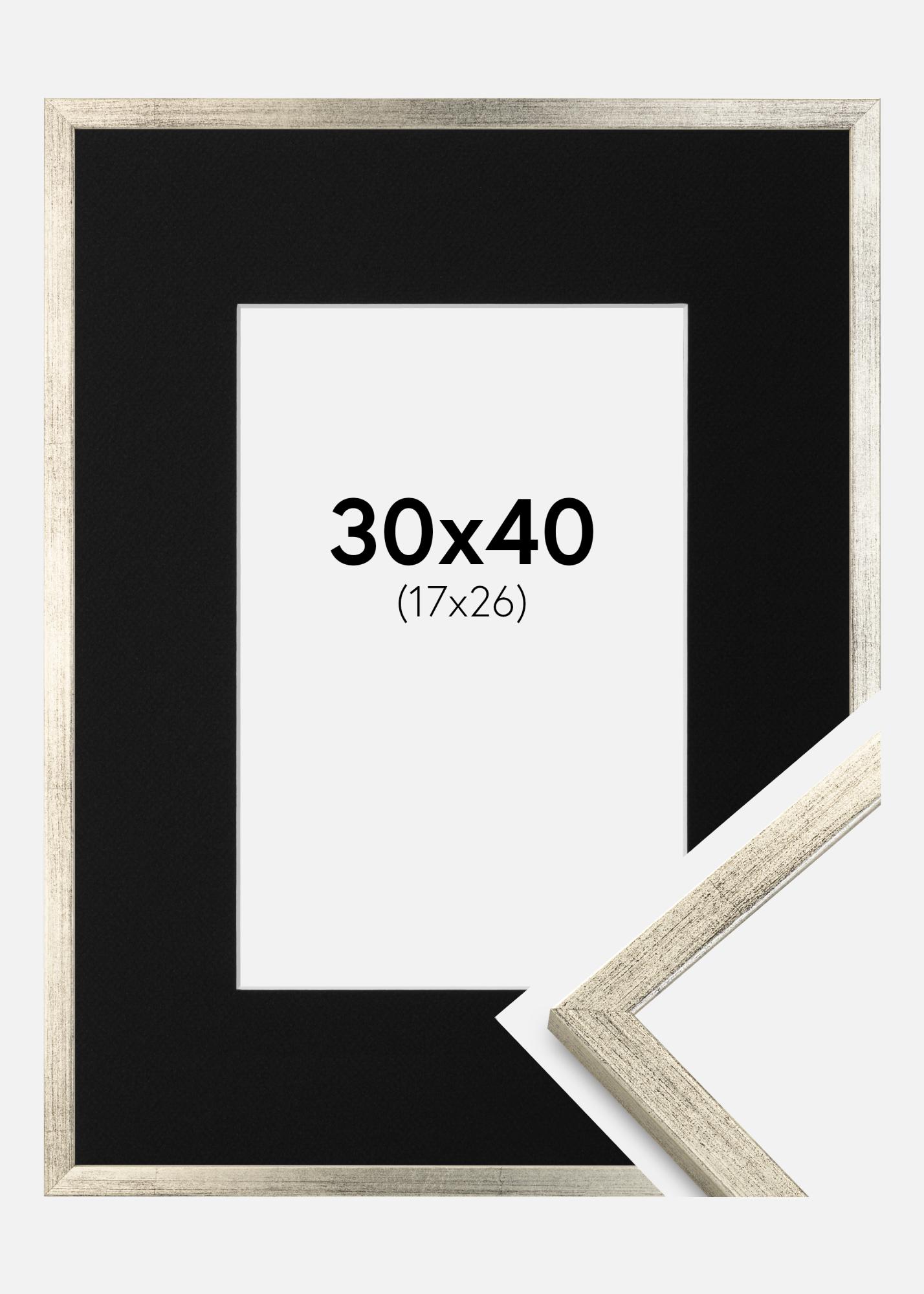 Rahmen Galant Silber 30x40 cm - Passepartout Schwarz 18x27 cm