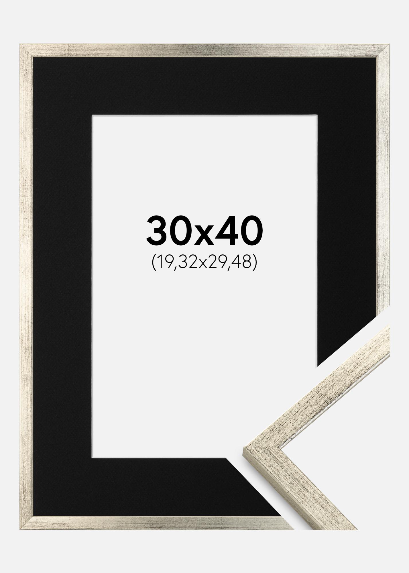 Rahmen Galant Silber 30x40 cm - Passepartout Schwarz 8x12 inches