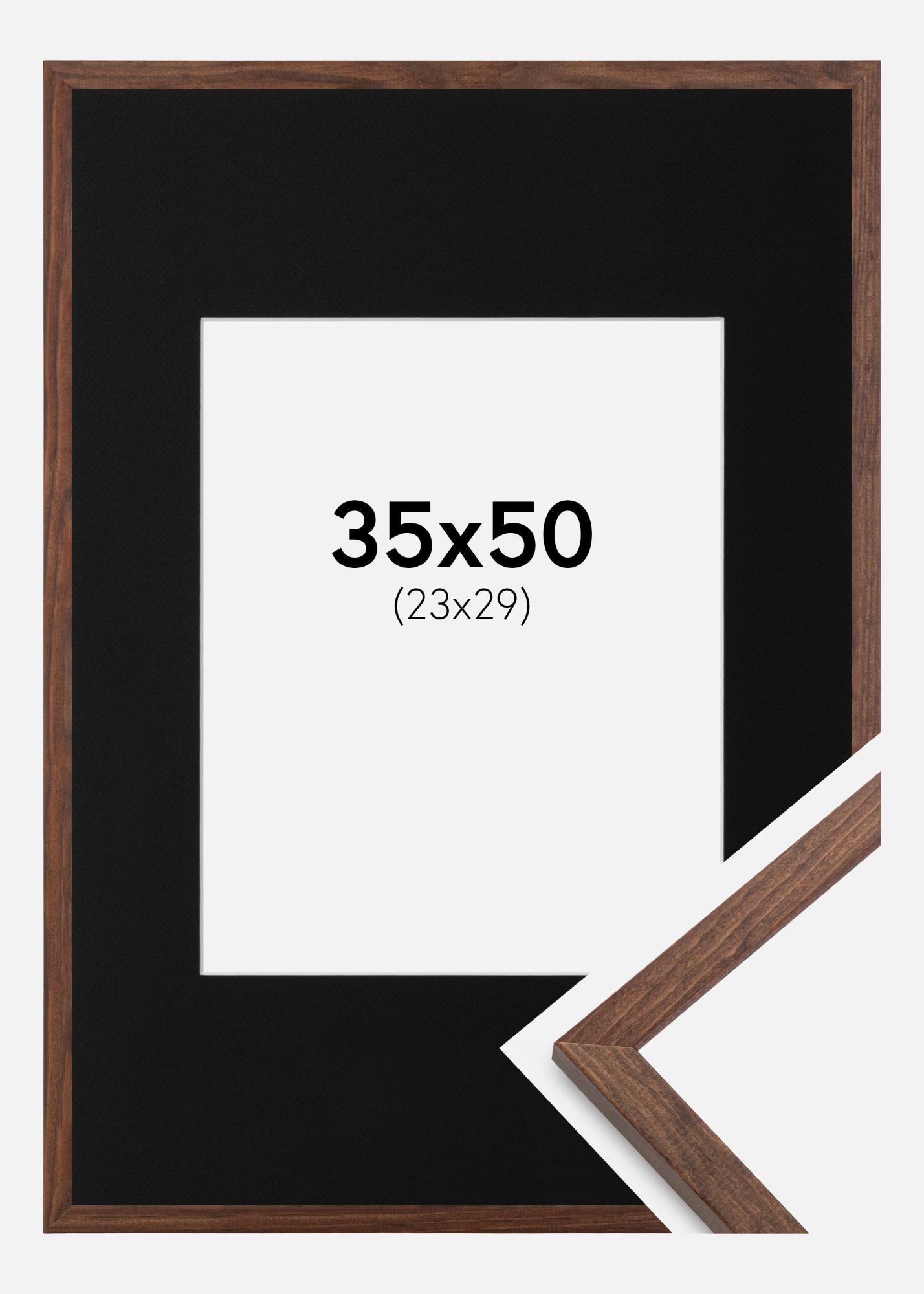 Rahmen Galant Walnuss 35x50 cm - Passepartout Schwarz 24x30 cm