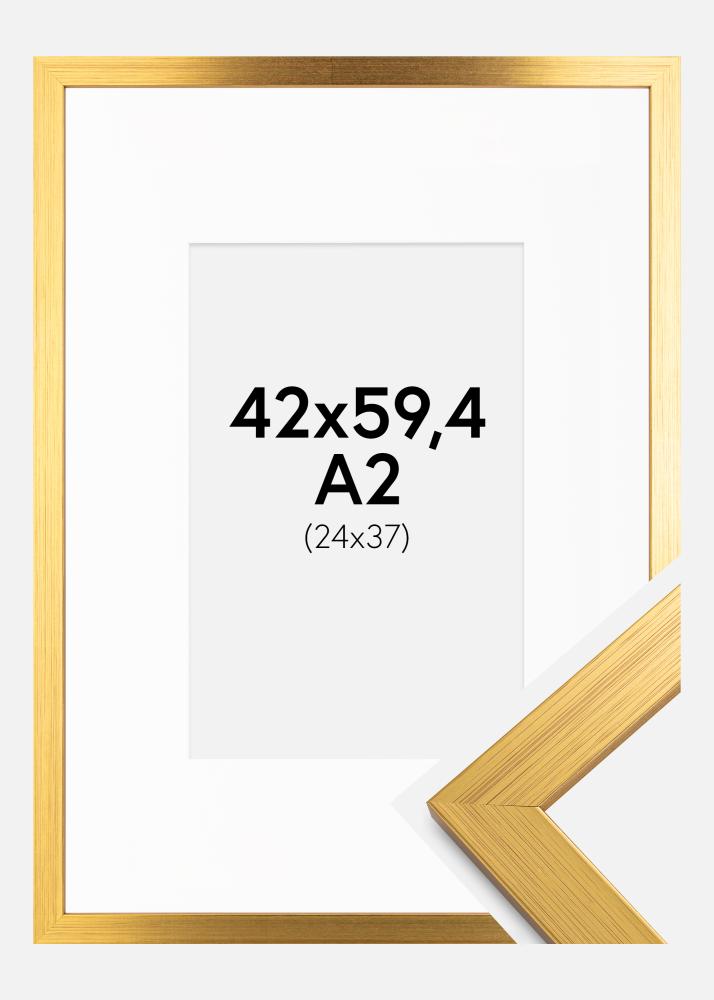 Rahmen Gold Wood 42x59,4 cm (A2) - Passepartout Weiß 25x38 cm