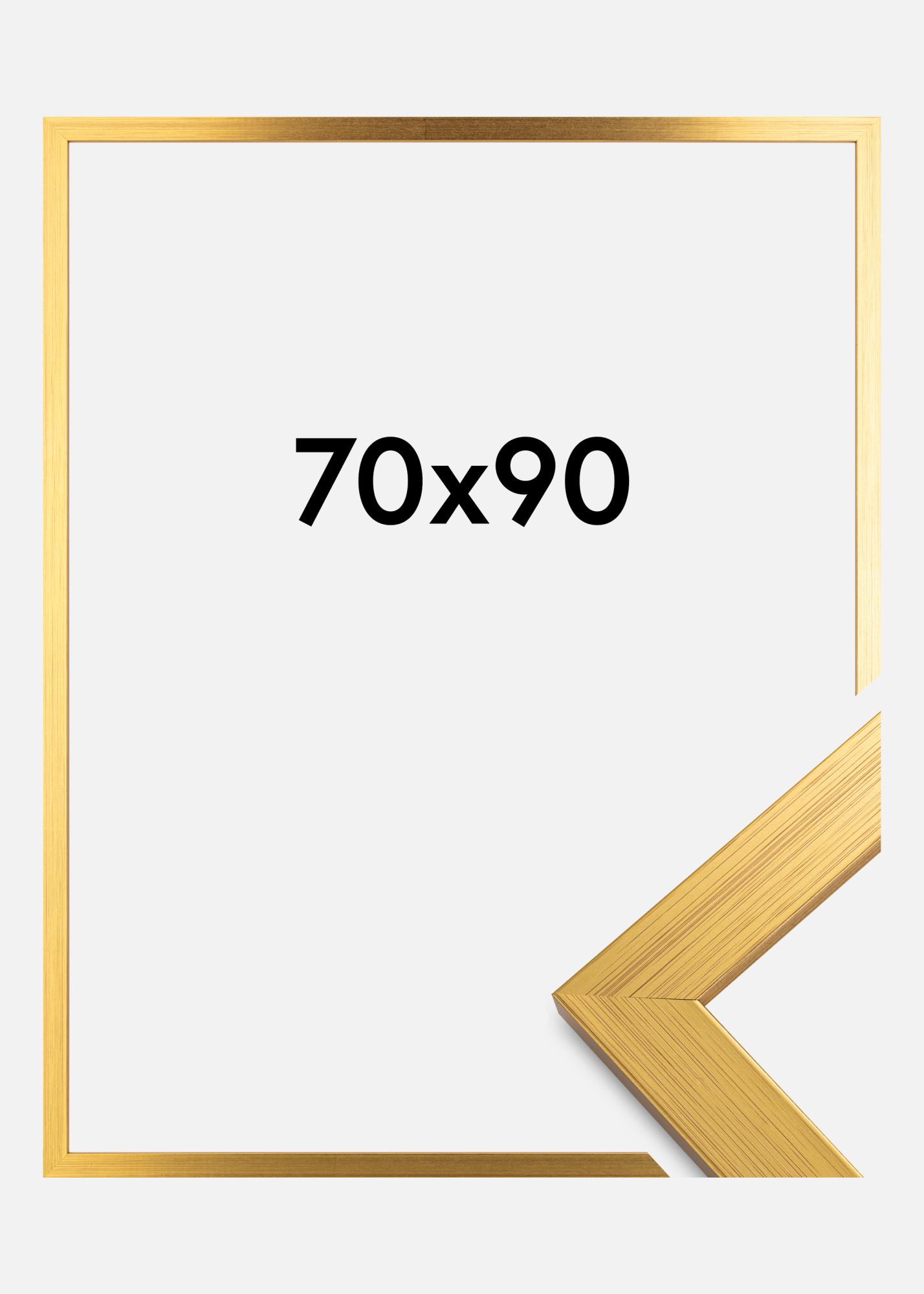 Verleihen Sie Ihren Wänden einen Hauch von Eleganz mit diesem 70x90 cm goldenen Fotorahmen. Mit seinem klassischen Design und warmen Tönen wird dieser Bilderrahmen zu einem prächtigen Hingucker in jedem Zimmer. Die Rahmenbreite von 22 mm sorgt für eine robuste und markante Kante für Ihre Kunstwerke oder Fotos.