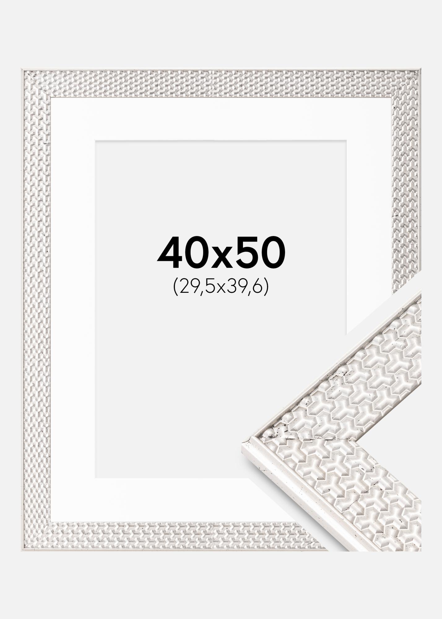Rahmen Grace Silber 40x50 cm - Passepartout Weiß 12x16 inches