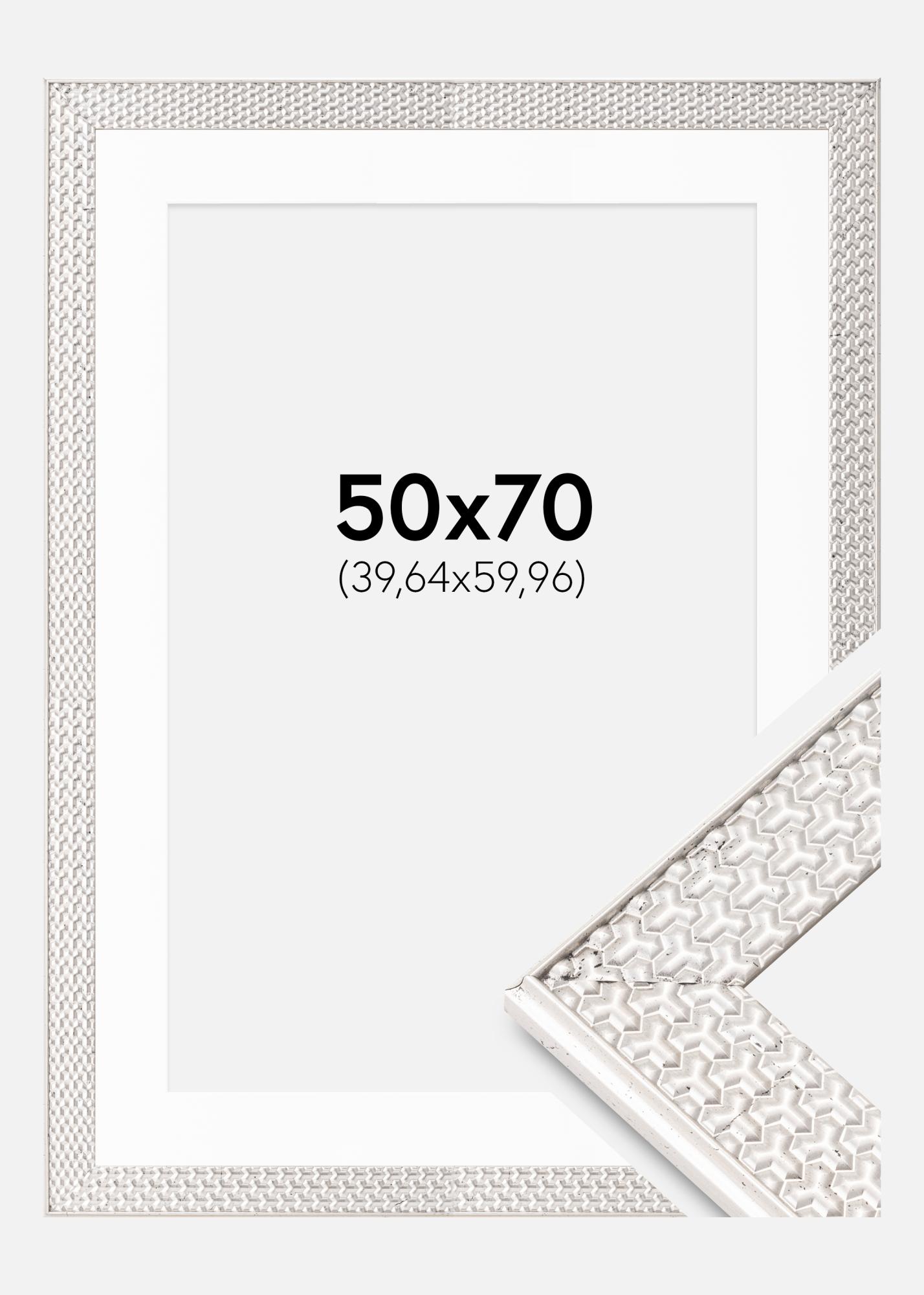 Rahmen Grace Silber 50x70 cm - Passepartout Weiß 16x24 inches