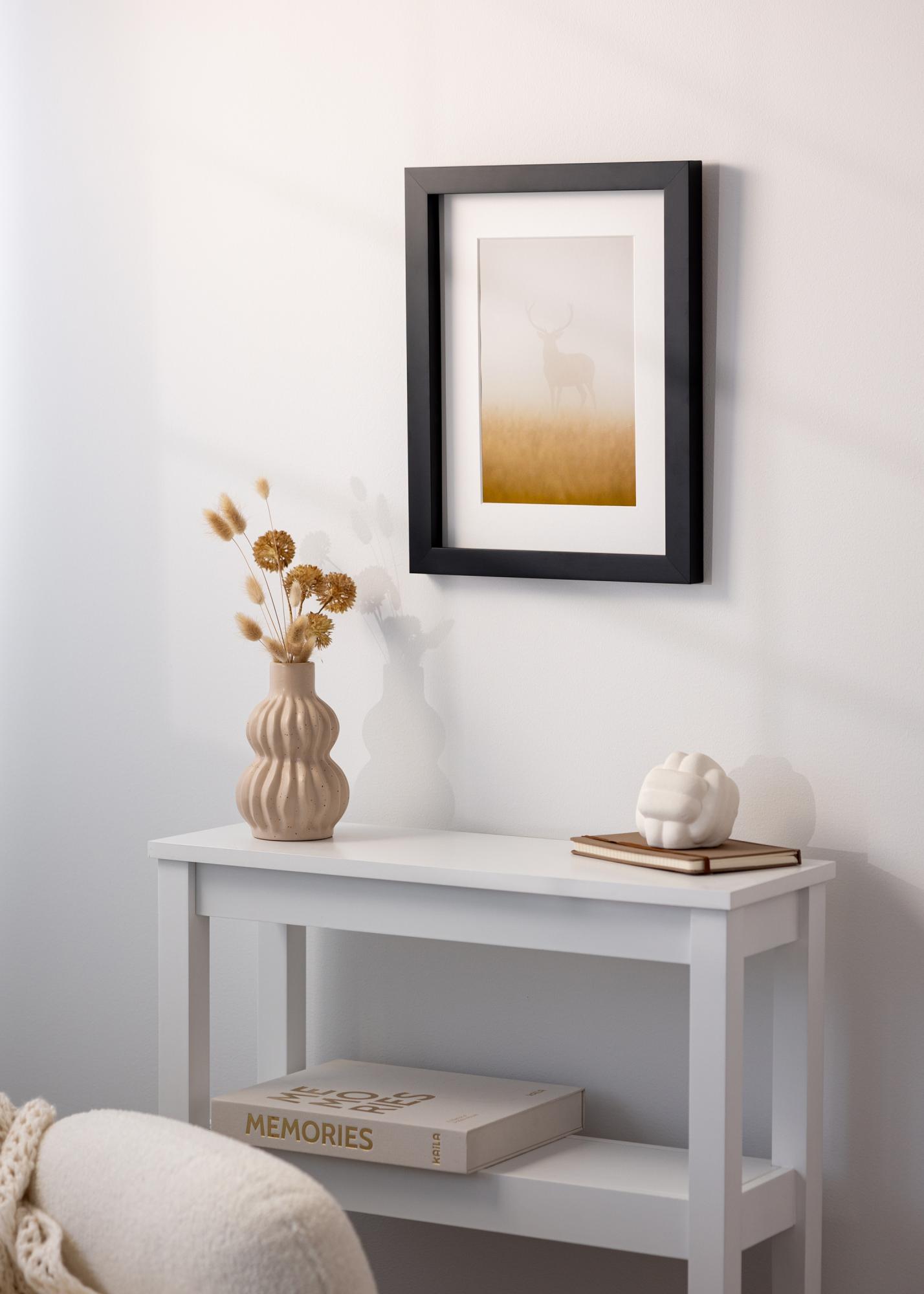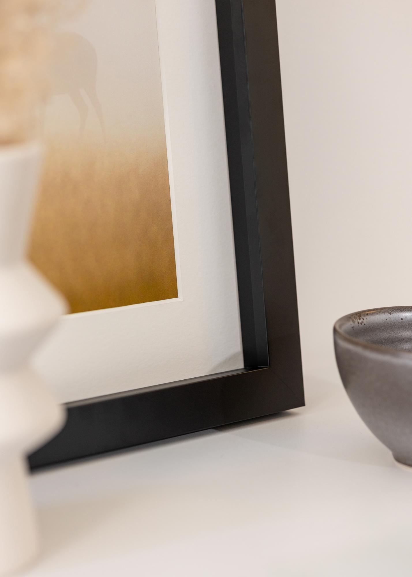 Rahmen Hathor Schwarz ist ein maßgefertigter Bilderrahmen, der in unserer eigenen Rahmenwerkstatt hergestellt wird, was Ihnen die Möglichkeit gibt, einen Fotorahmen zu erhalten, der perfekt zu Ihrem Kunstwerk oder Foto passt. Mit seiner schwarzen Farbe und seinem eleganten Design wird er zu einer stilvollen Ergänzung für alle Arten von Einrichtungen. Die matte Oberfläche des Rahmens verleiht ein modernes Gefühl, das das Motiv auf geschmackvolle Weise hervorhebt.
