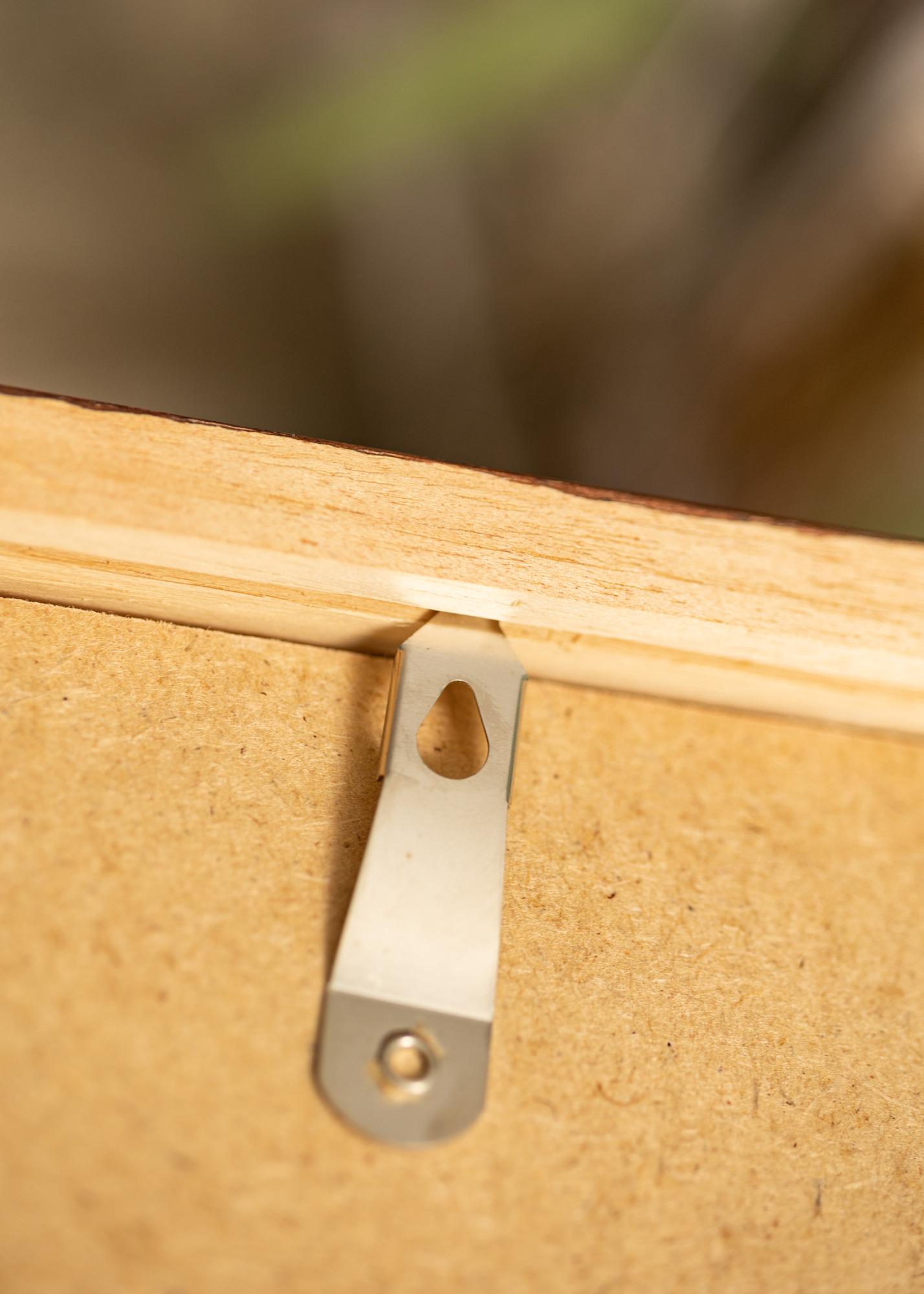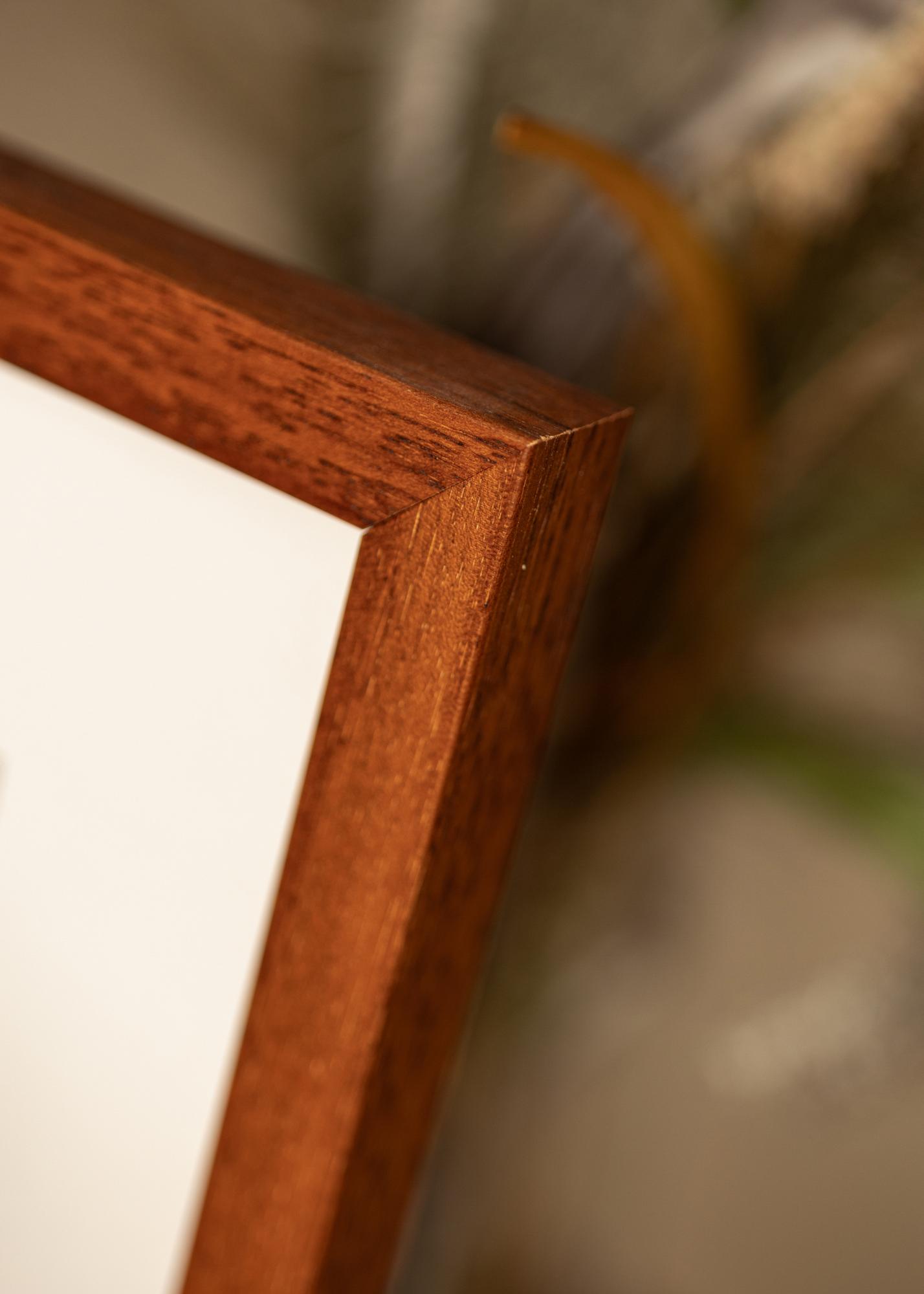 Dieser elegante Rahmen in Kirschbaumfarbe hat eine Breite von 19,6 mm und eine Tiefe von 25 mm. Er ist mit Metallhängern für sowohl horizontale als auch vertikale Aufhängung ausgestattet. Passt zu Bildern in der Größe 25x38 cm und hat Außenmaße von 45x62,4 cm.