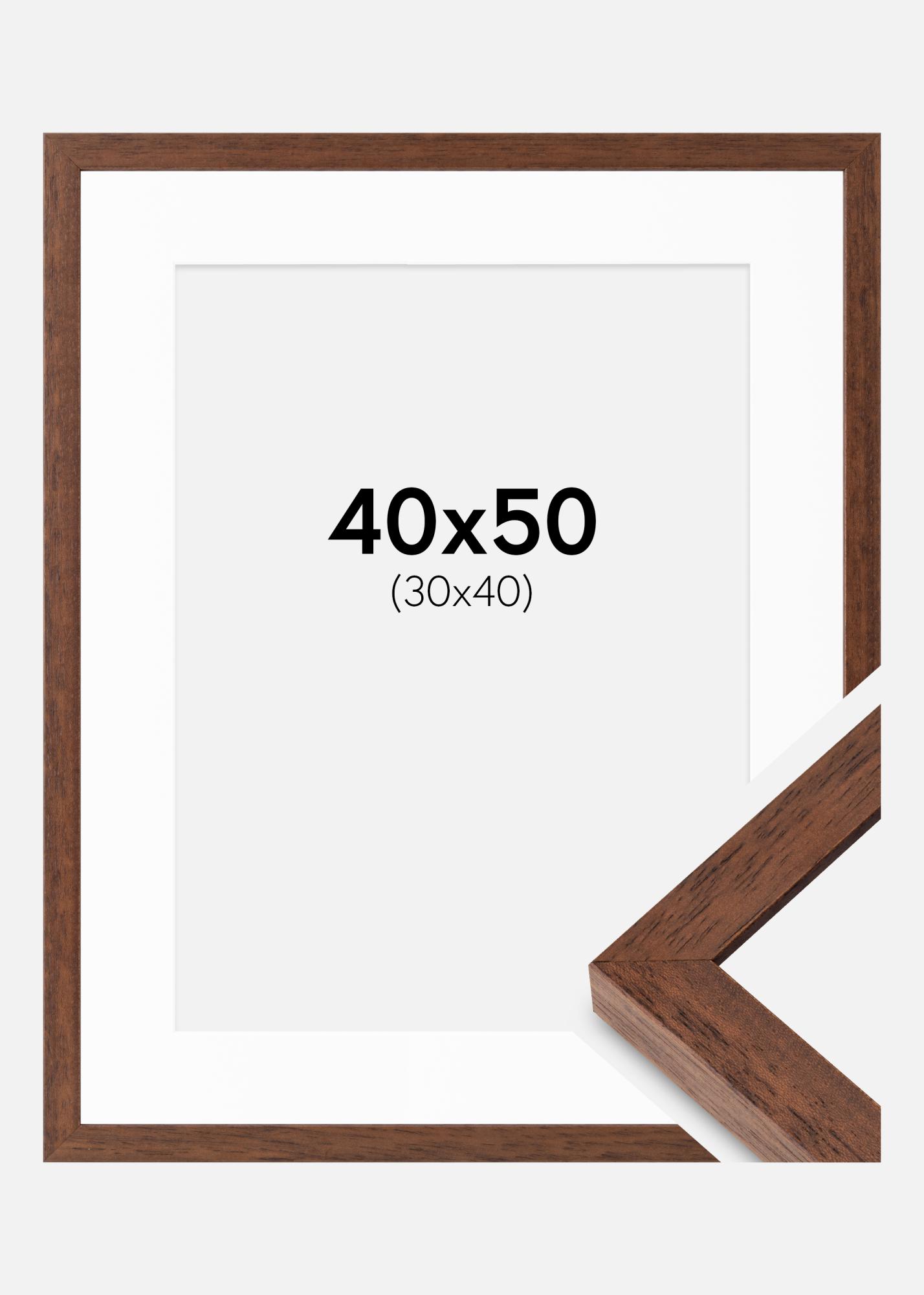 Rahmen Hermes Teak 40x50 cm - Passepartout Weiß 31x41 cm
