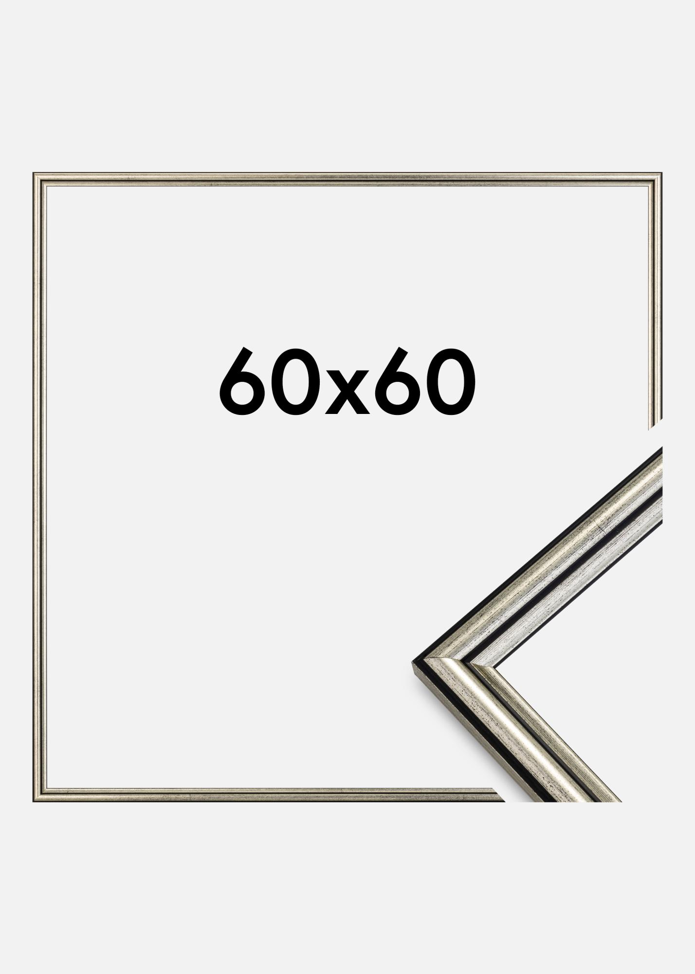 Erleben Sie die Eleganz unseres 60x60 cm silbernen Rahmens, eine perfekte Kombination aus Stil und Funktion. Dieser Bilderrahmen wurde sorgfältig in Schweden gefertigt und bietet ein einzigartiges Design mit schwarzen Flecken und Linien auf einer matten Oberfläche. Mit einem Rahmen, der 15 mm breit und 14 mm tief ist, verleiht dieser Bilderrahmen jedem Raum ein markantes und modernes Aussehen.