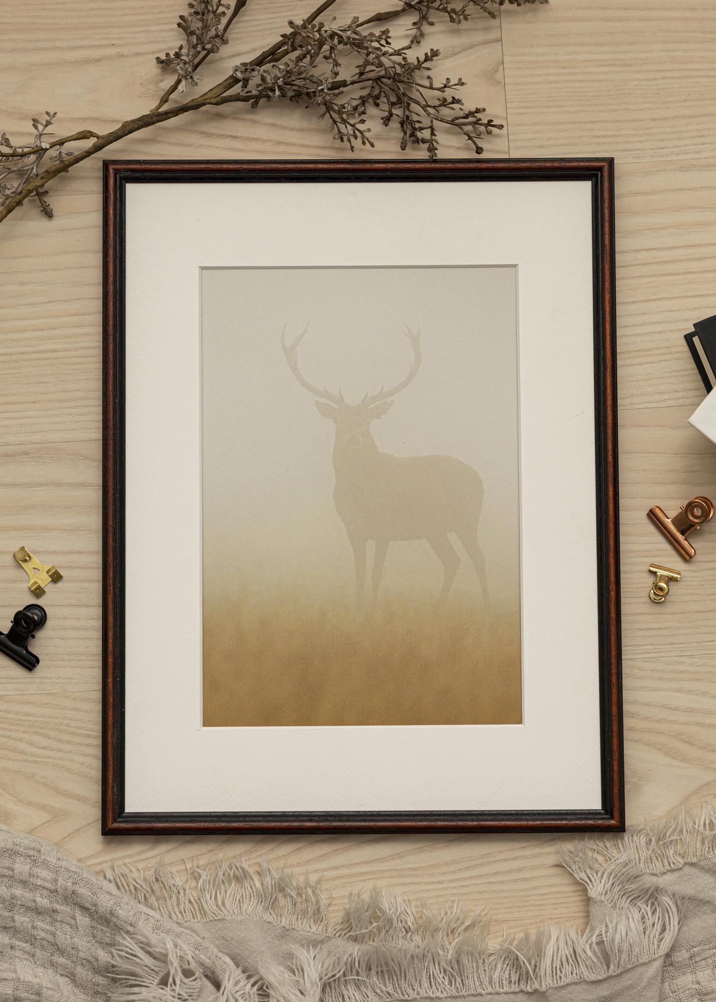 Hergestellt in Schweden aus Ayoholz, vereint dieser Rahmen Langlebigkeit mit Stil. Mit seiner matten Oberfläche, die das warme Walnussmuster ergänzt, verleiht er einen anspruchsvollen Eindruck. Die Rahmenbreite beträgt 15 mm und die Tiefe 14 mm, was dem gerahmten Bild eine diskrete, aber doch präsente Atmosphäre verleiht.