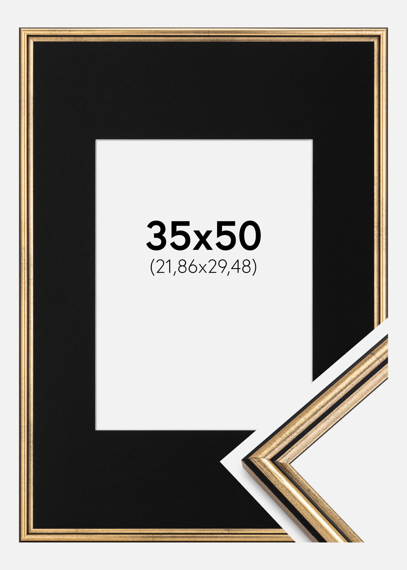 Rahmen Horndal Gold 35x50 cm - Passepartout Schwarz 9x12 inches