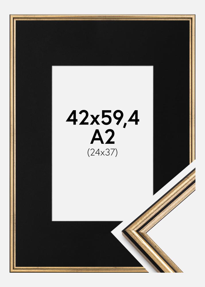 Rahmen Horndal Gold 42x59,4 cm (A2) - Passepartout Schwarz 25x38 cm