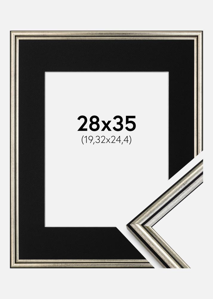 Rahmen Horndal Silber 28x35 cm - Passepartout Schwarz 8x10 inches