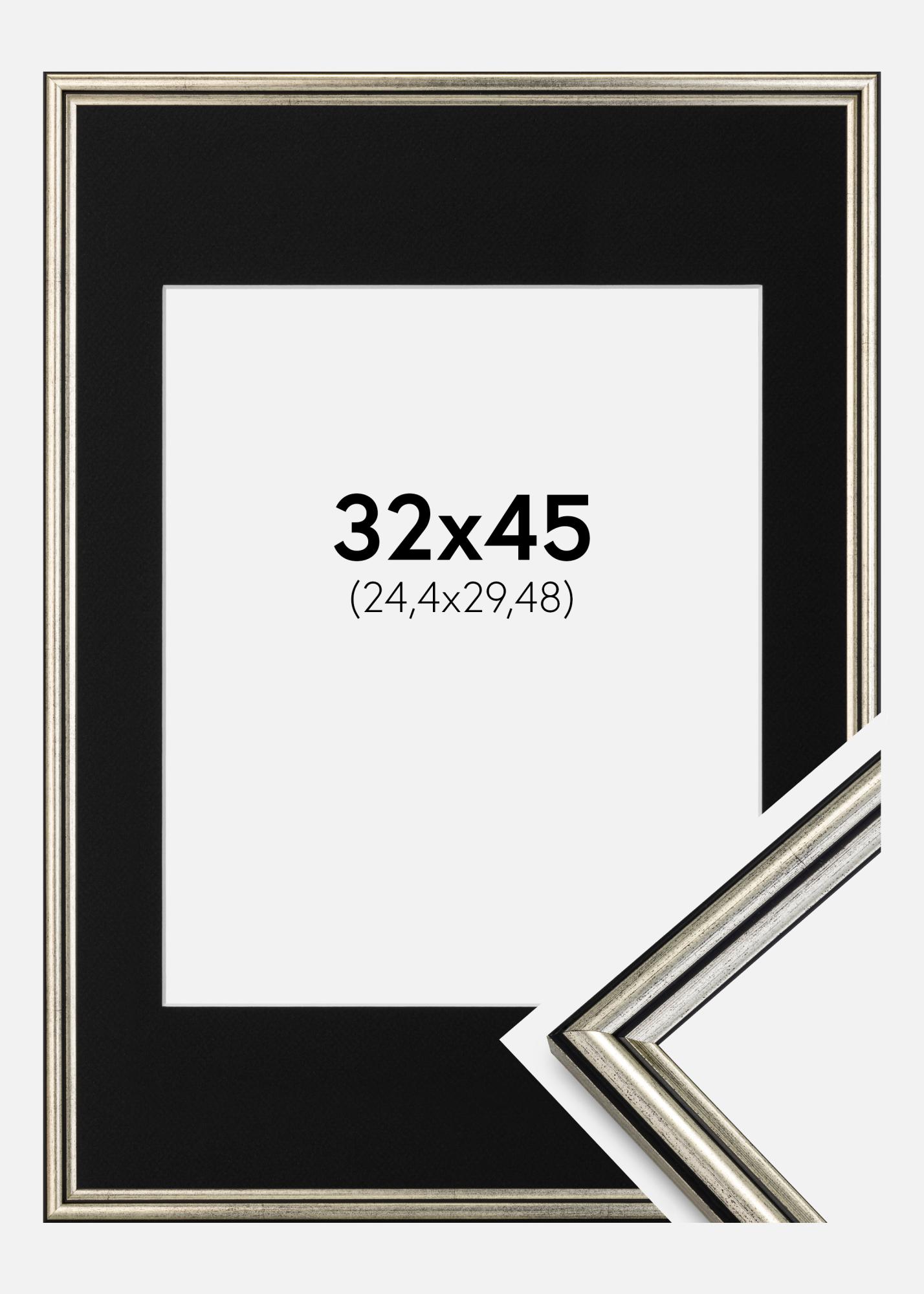 Rahmen Horndal Silber 32x45 cm - Passepartout Schwarz 10x12 inches