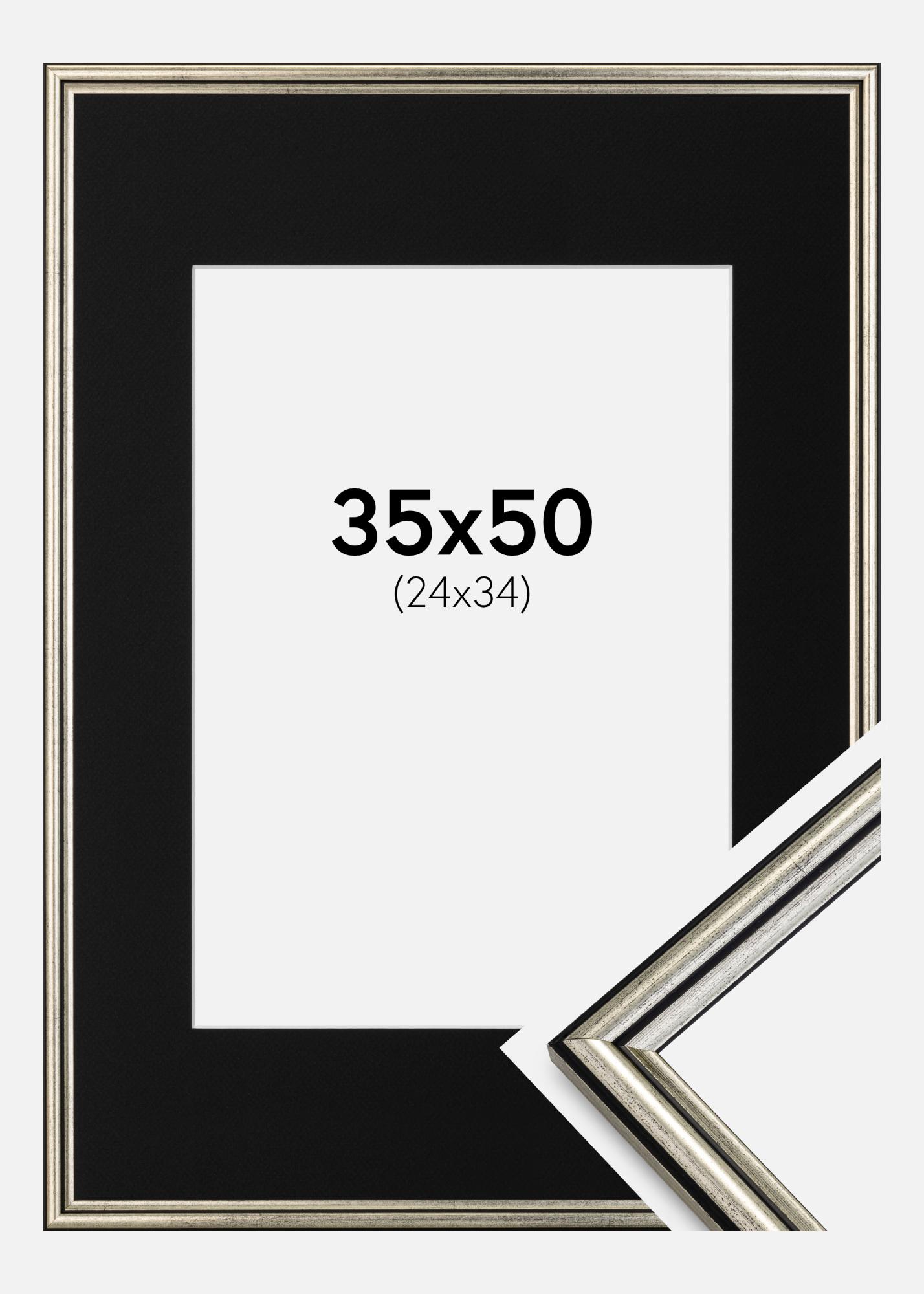 Rahmen Horndal Silber 35x50 cm - Passepartout Schwarz 25x35 cm