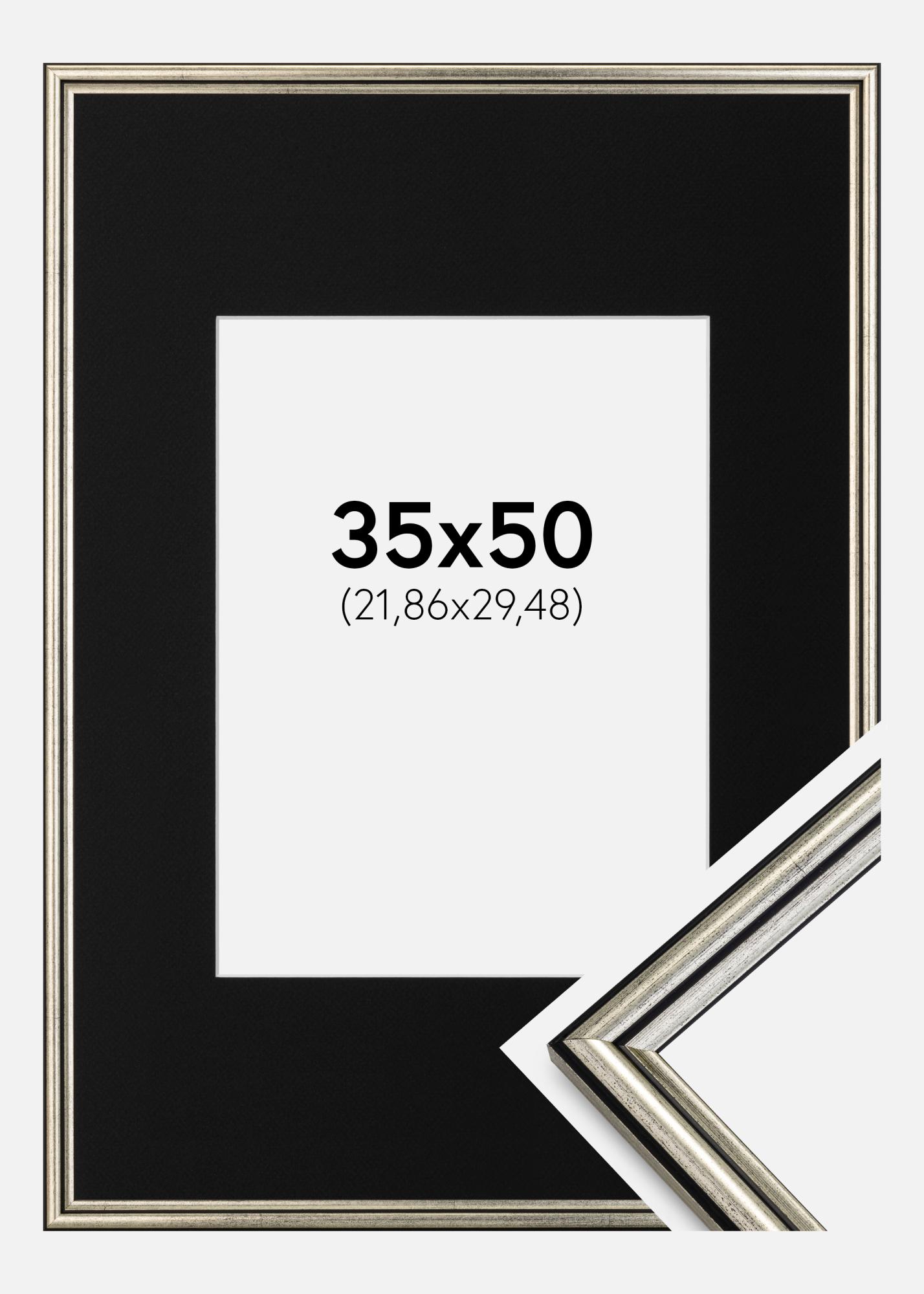 Rahmen Horndal Silber 35x50 cm - Passepartout Schwarz 9x12 inches