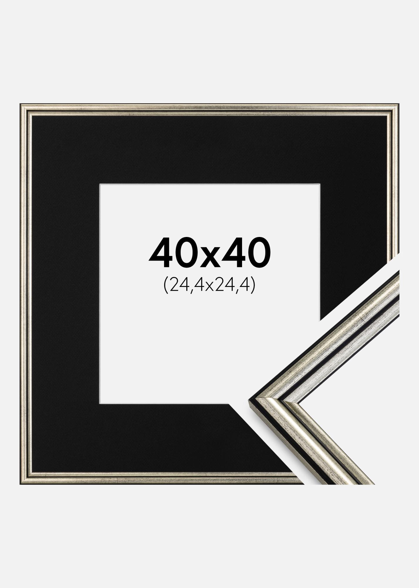 Rahmen Horndal Silber 40x40 cm - Passepartout Schwarz 10x10 inches
