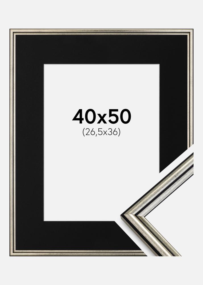 Rahmen Horndal Silber 40x50 cm - Passepartout Schwarz 27,5x37 cm