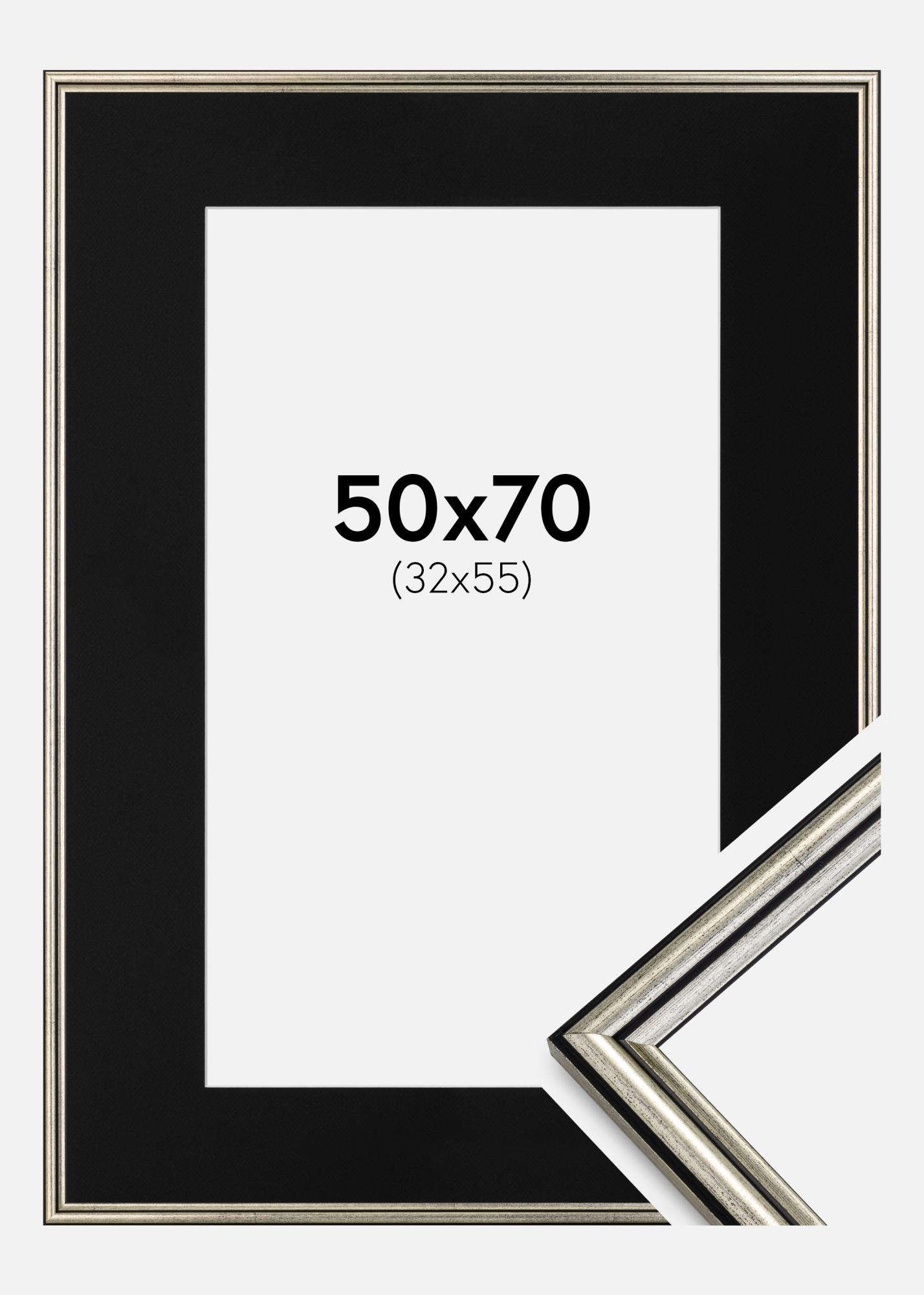 Rahmen Horndal Silber 50x70 cm - Passepartout Schwarz 33x56 cm