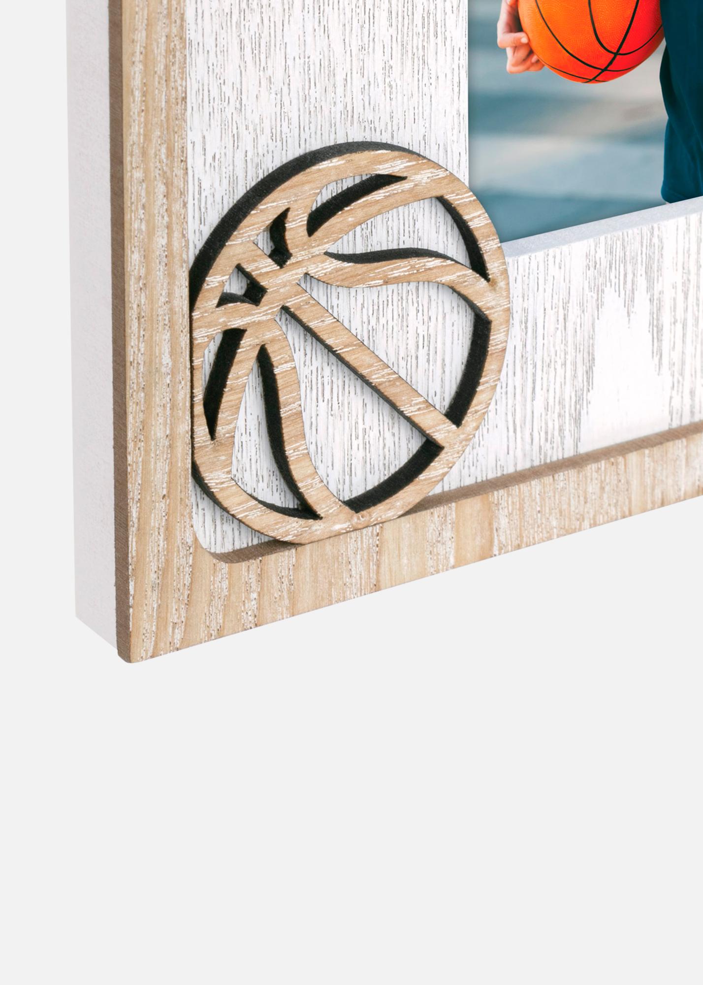 Dieser Bilderrahmen hat ein sportliches und verspieltes Design mit einem Basketball-Thema, perfekt für Basketball-Enthusiasten und junge Sportler. Auf dem Rahmen befinden sich ausgeschnittene Details von einem Basketballkorb und einem Basketball, was den thematischen Ausdruck verstärkt. Der Rahmen ist für Fotos in der Größe 10x15 cm angepasst, was ihn ideal macht, um Erinnerungen an Basketballtrainings, Spiele oder andere sportbezogene Momente zu bewahren. Ein perfektes Geschenk für Basketballliebhaber oder als persönliches Einrichtungsdetail in einem sportlichen Raum.