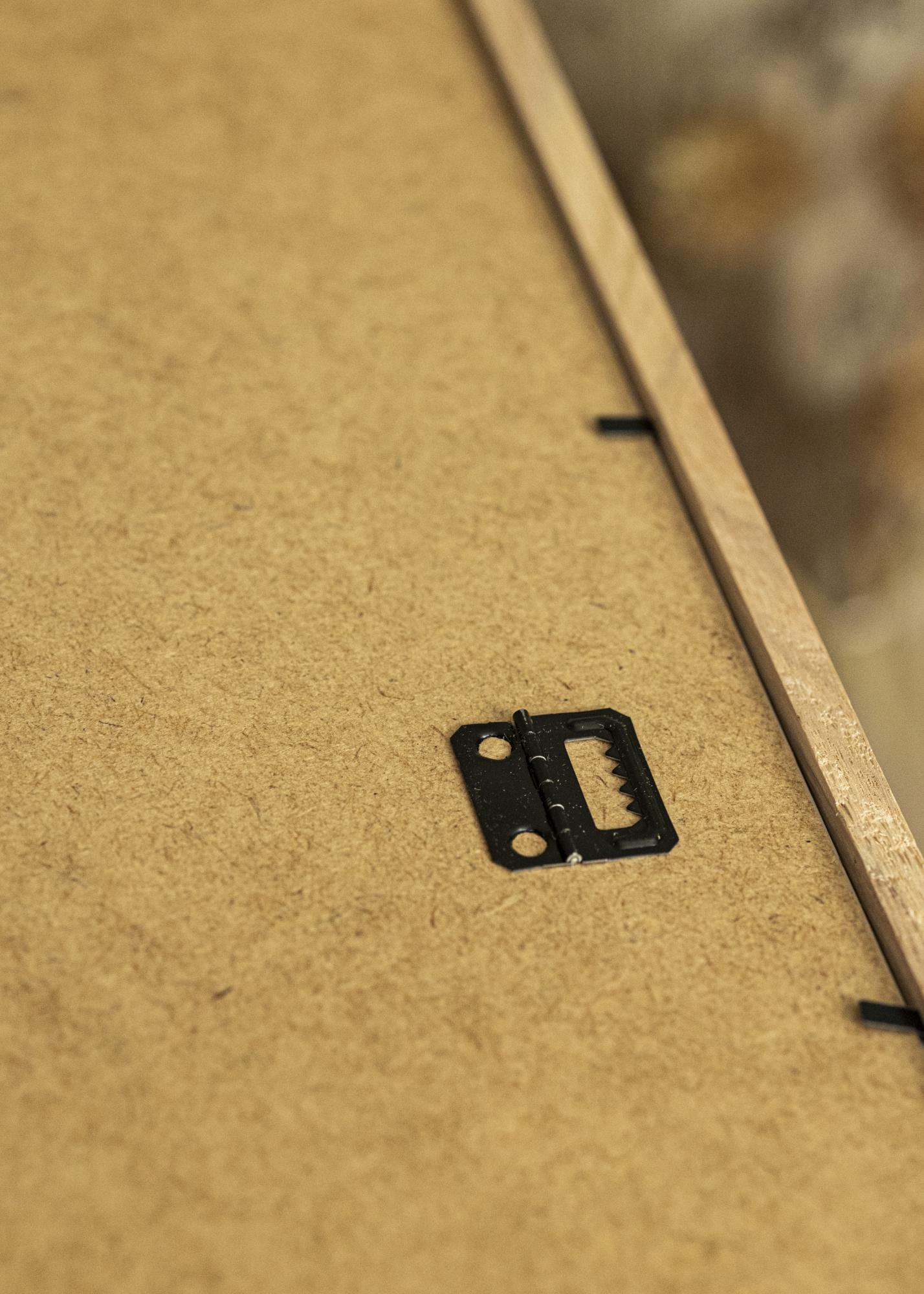 Die Bilderrahmenrückwand besteht aus MDF und wird von kleinen Stiften gehalten, die einfach nach oben gebogen werden, um die Rückwand zu lösen und ein Bild einzulegen. Dieser Bilderrahmen in Eiche kann sowohl vertikal als auch horizontal aufgehängt werden.