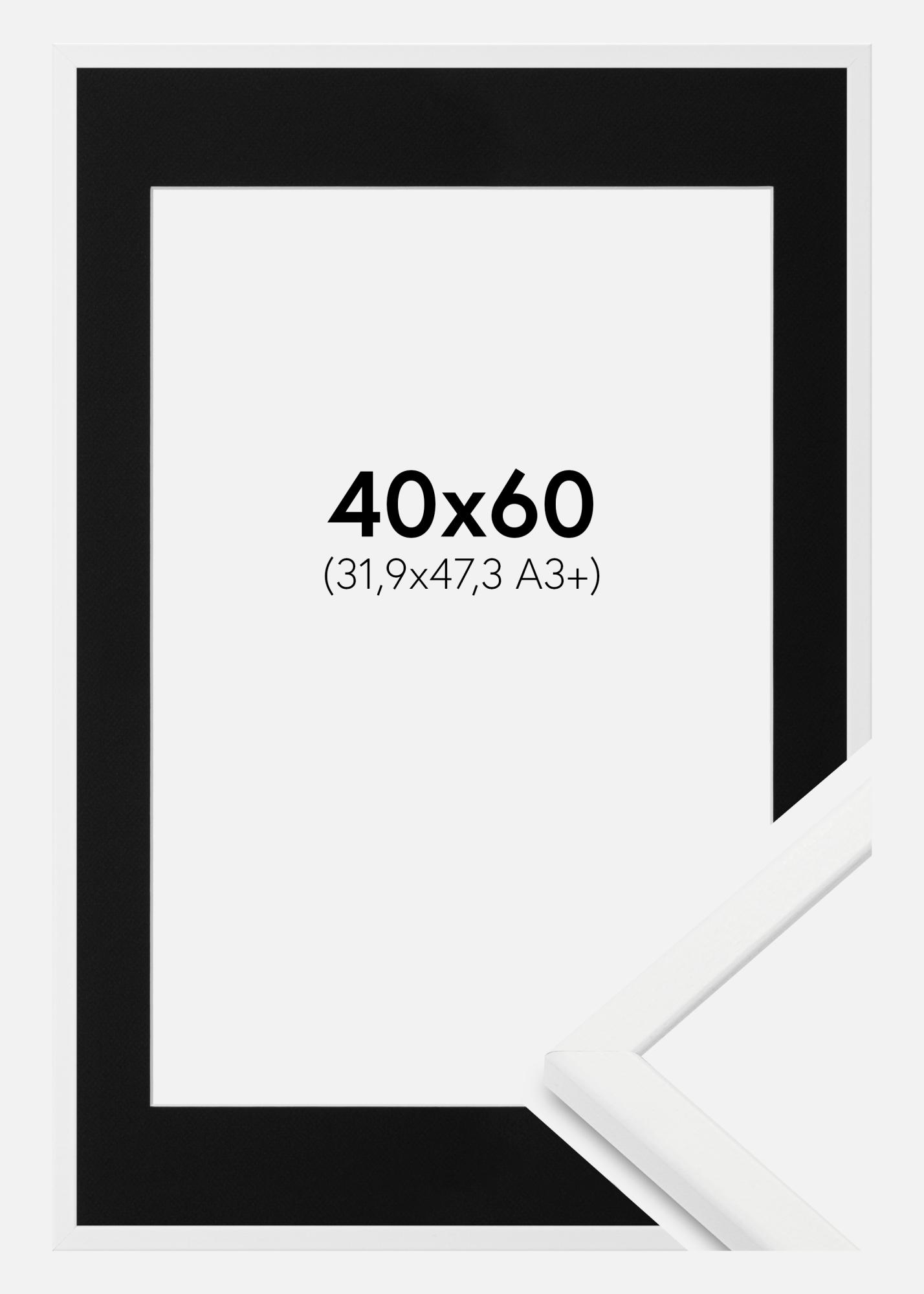 Rahmen Kaspar Weiß 40x60 cm - Passepartout Schwarz 32,9x48,3 cm (A3+)